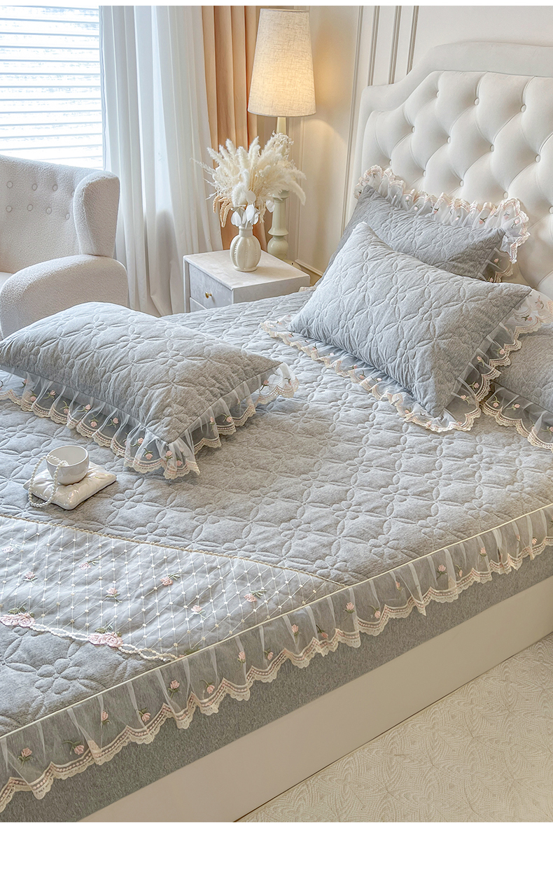 麒豆豆 2025新款色织蕾丝边床裙款床笠-花亦然 花亦然-烟熏灰