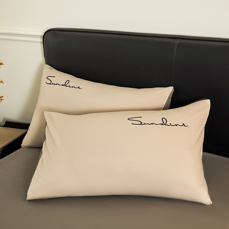 七仙女家纺 2025新款水洗磨毛刺绣轻奢简约系列单枕套单品枕套枕套单件 美拉德咖+奶茶