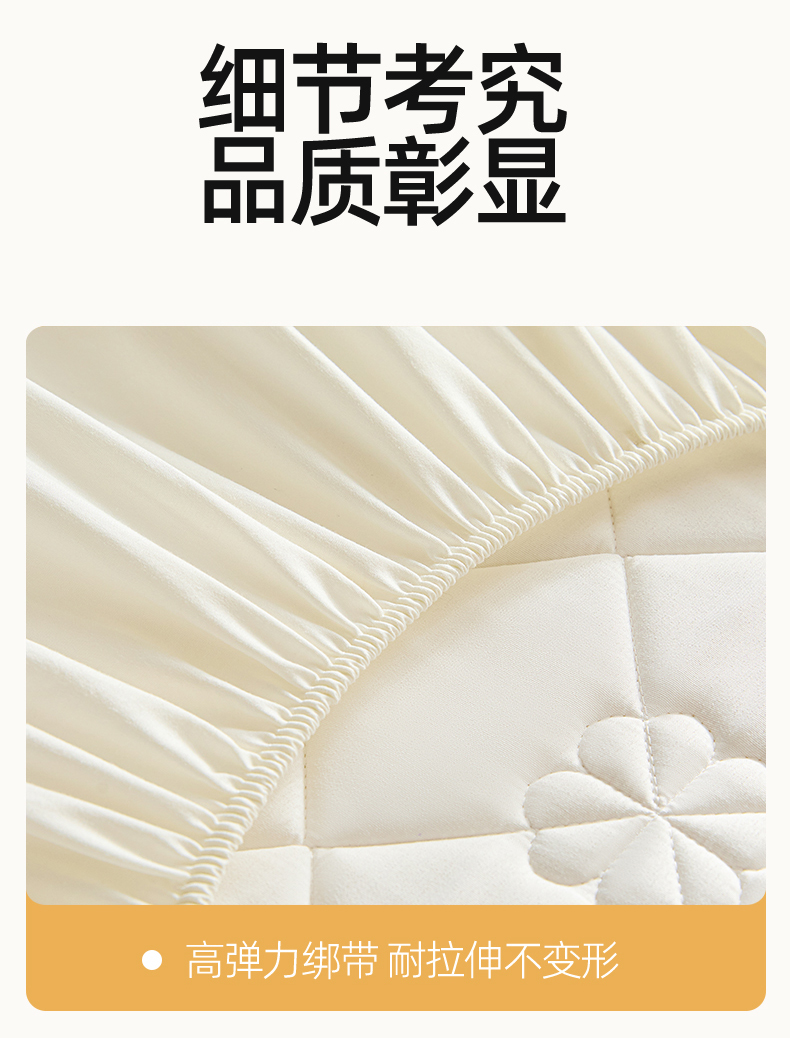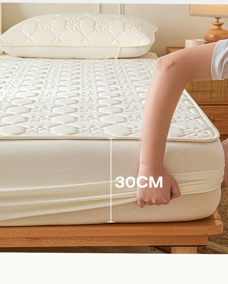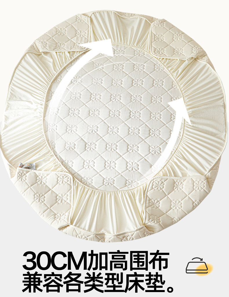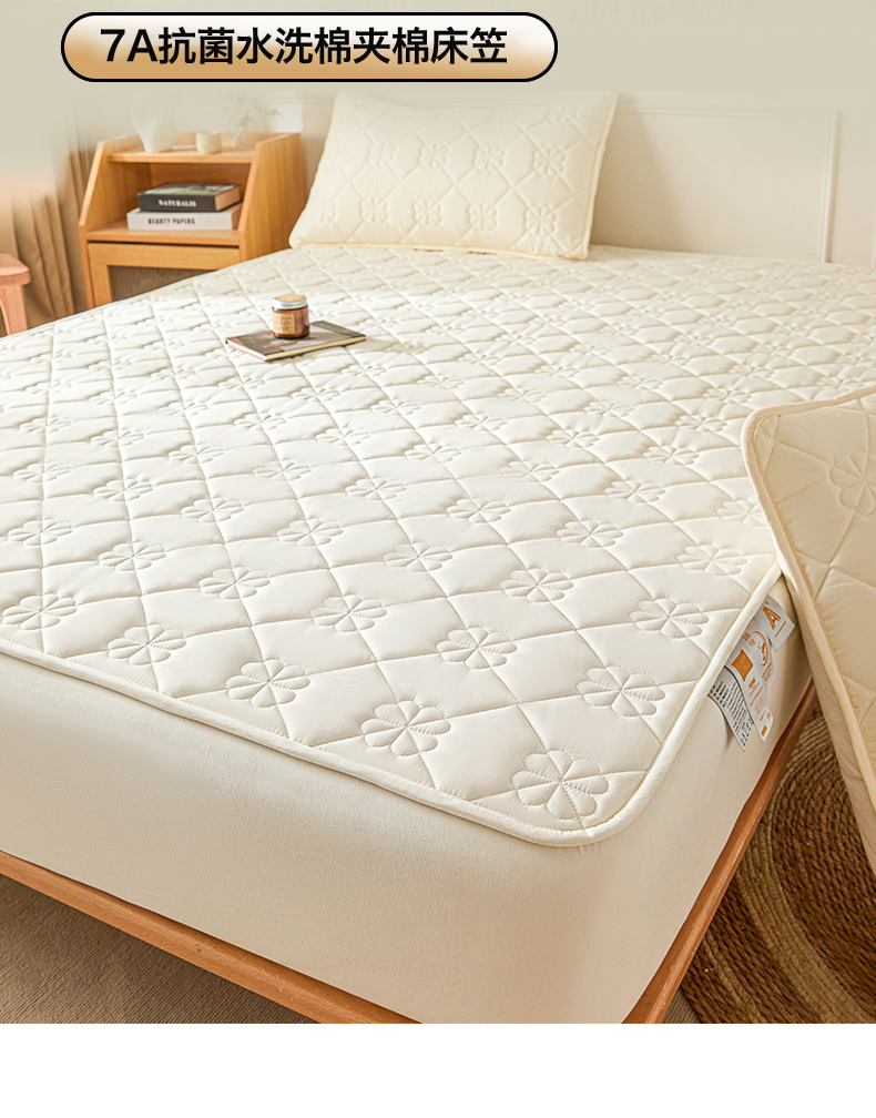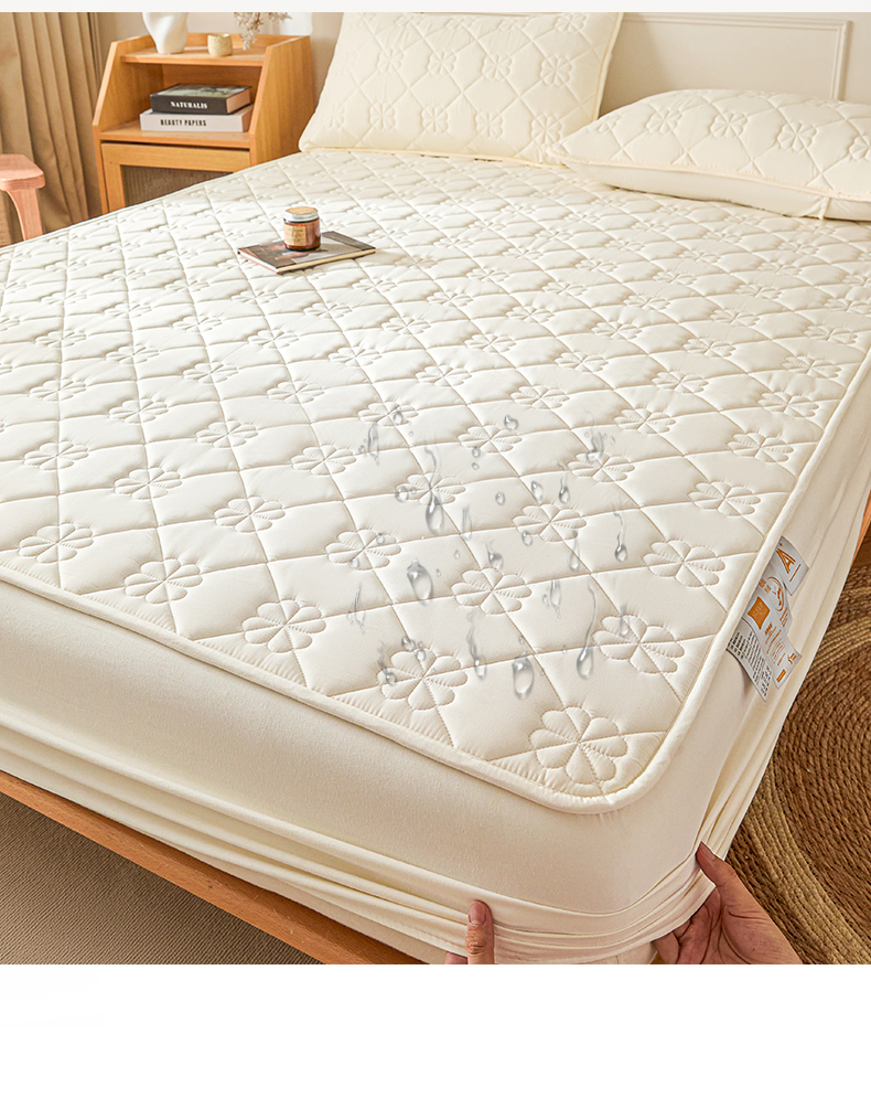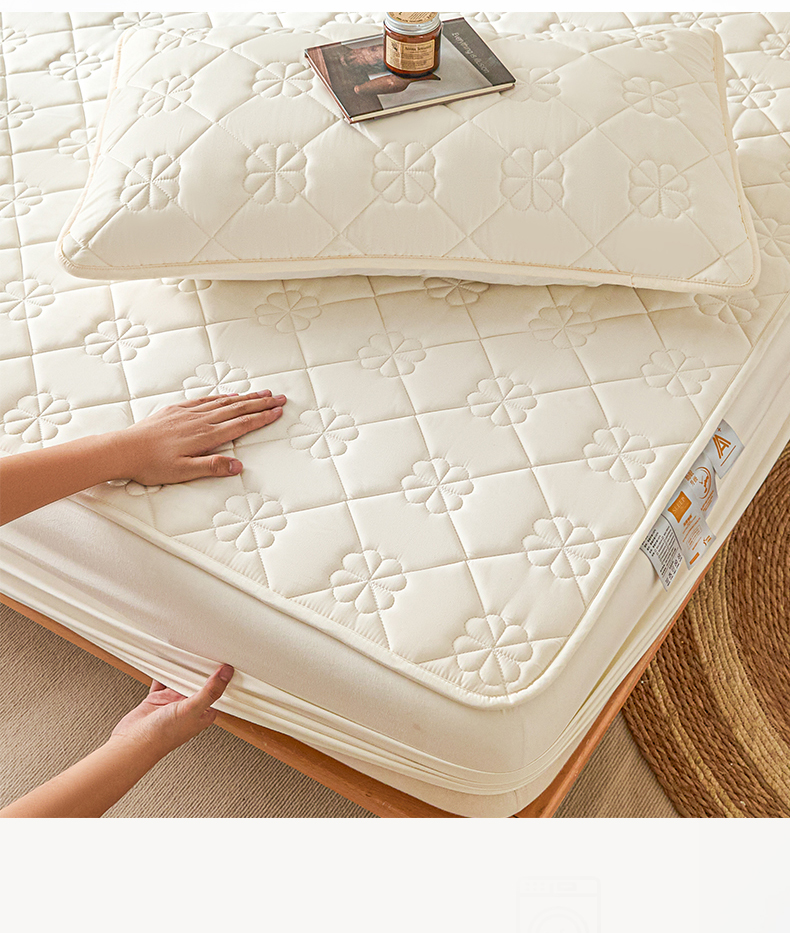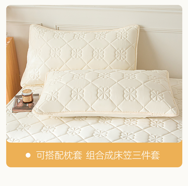 • 91家纺网 家纺一手货源 找家纺 雯豆家纺 2025新款简约防水款水洗棉夹棉床笠 幸运草-月光白