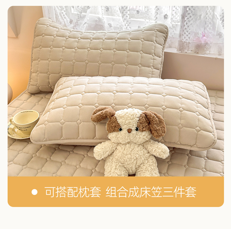 • 91家纺网 家纺一手货源 找家纺 雯豆家纺 2025新款简约水洗棉夹棉床笠-雅韵 雅韵-奶咖