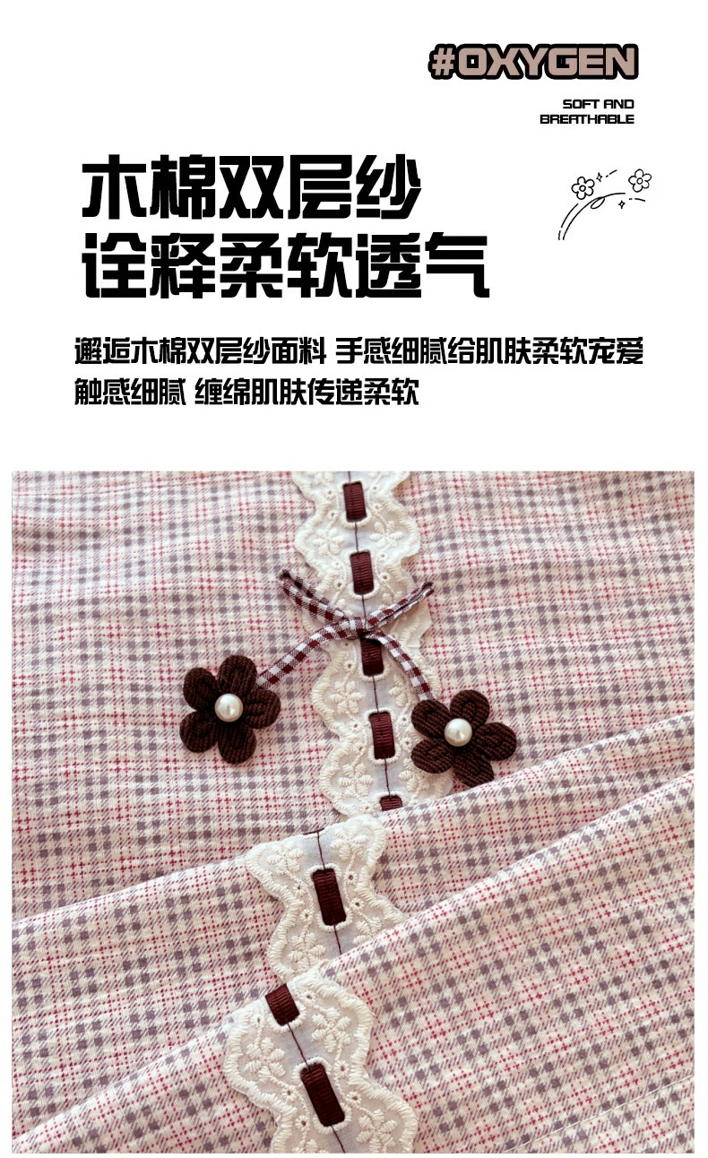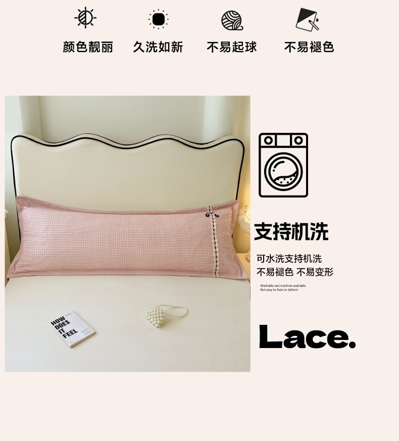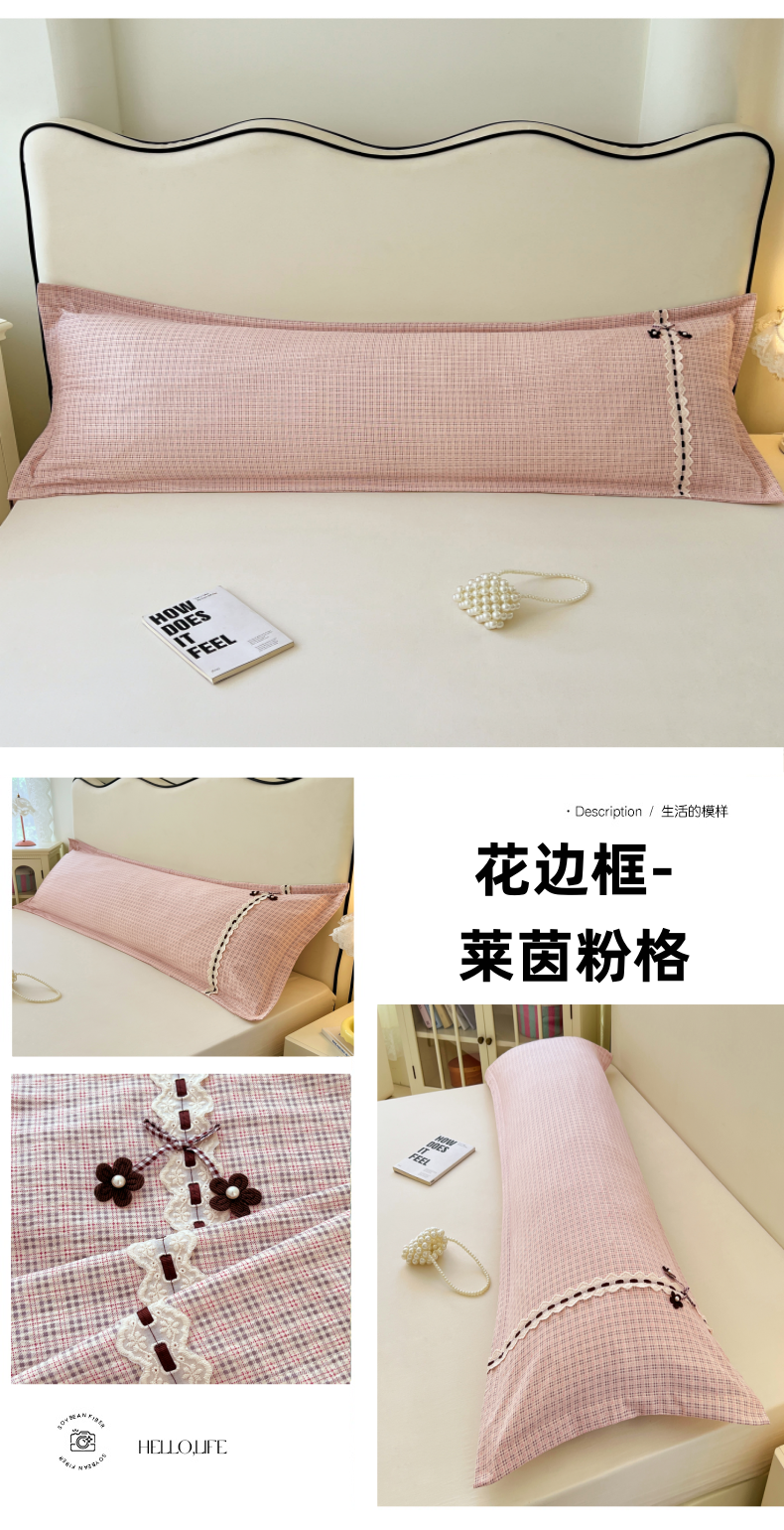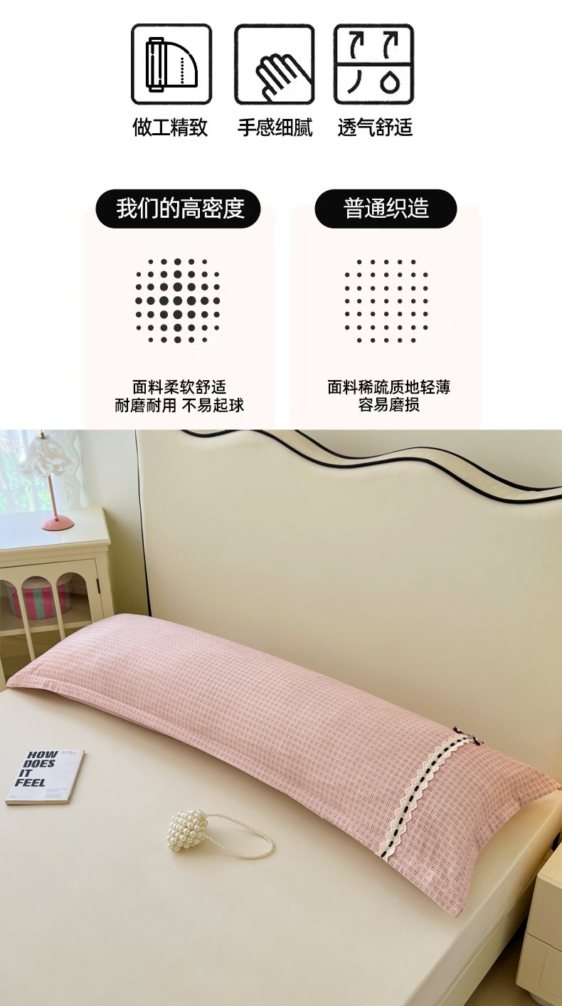 商品名称:梦舒羽 2025新款双层纱蕾丝花边格子枕套宿舍双人情侣1.8m枕芯套1.5米内胆套 莱茵粉格
