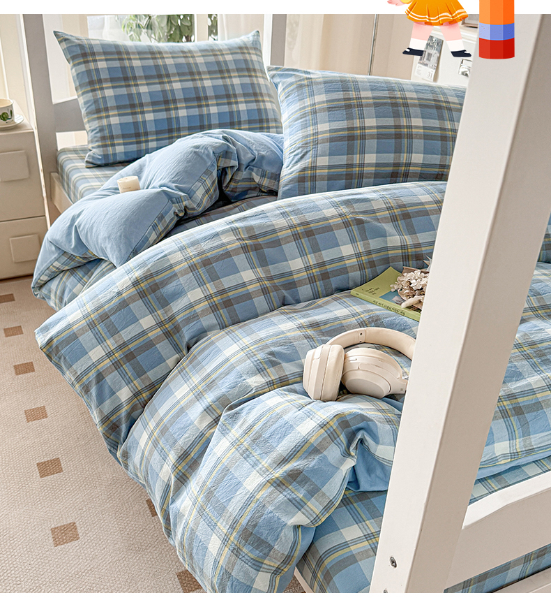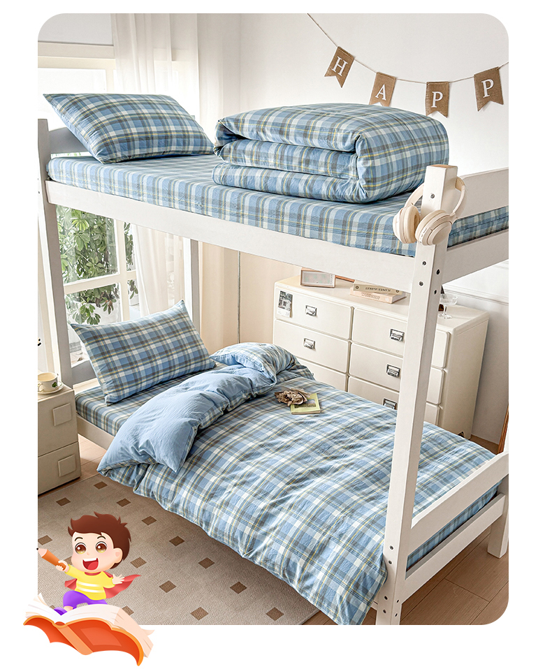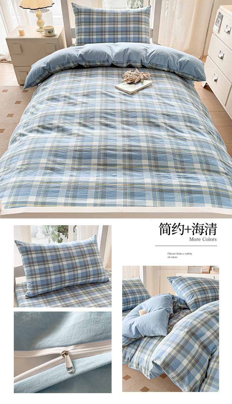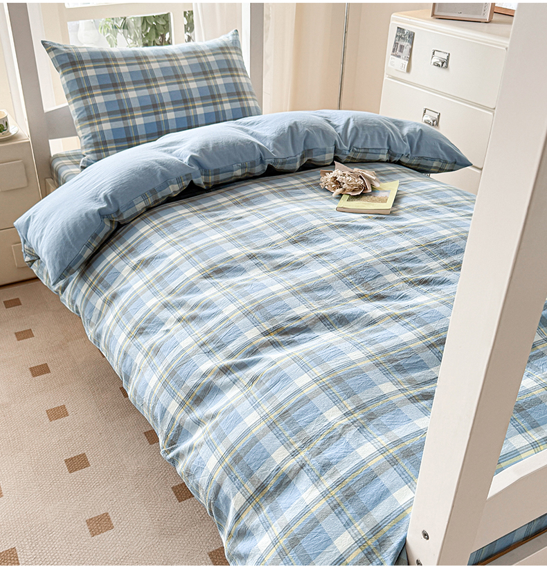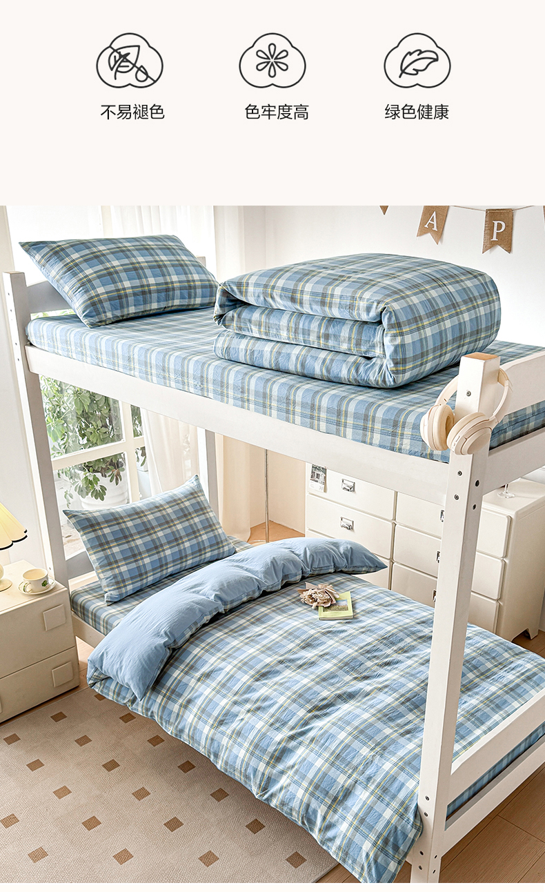 当前位置: 91家纺网 > 商品网购 > 床品套件 > 三件套 > 盛秋家纺 2025新款水洗棉格子学生小三套套件 简约+海清