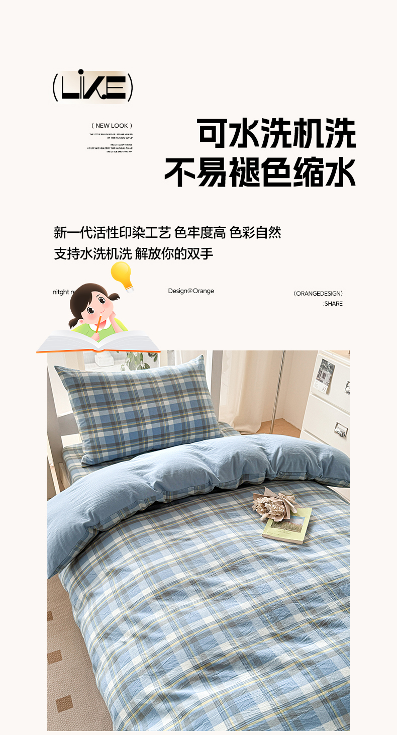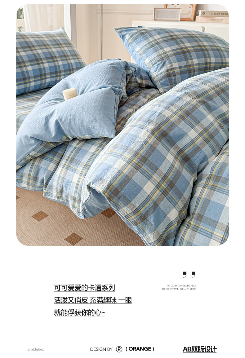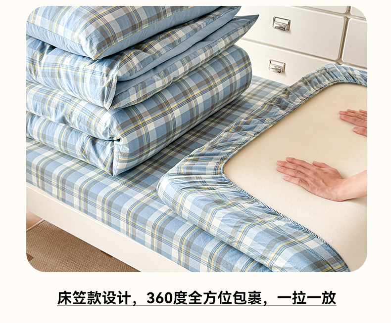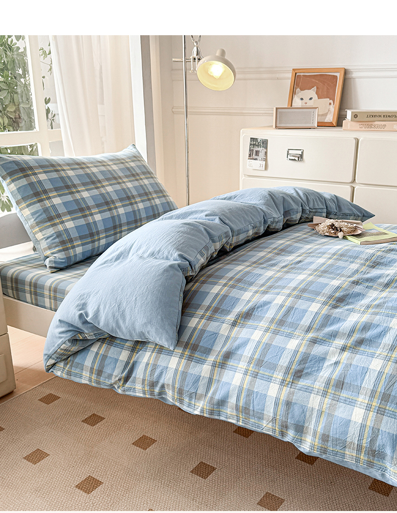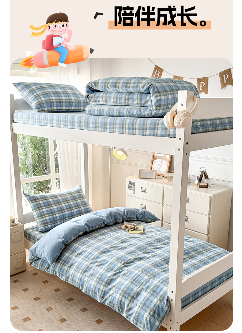当前位置: 91家纺网 > 商品网购 > 床品套件 > 三件套 > 盛秋家纺 2025新款水洗棉格子学生小三套套件 简约+海清