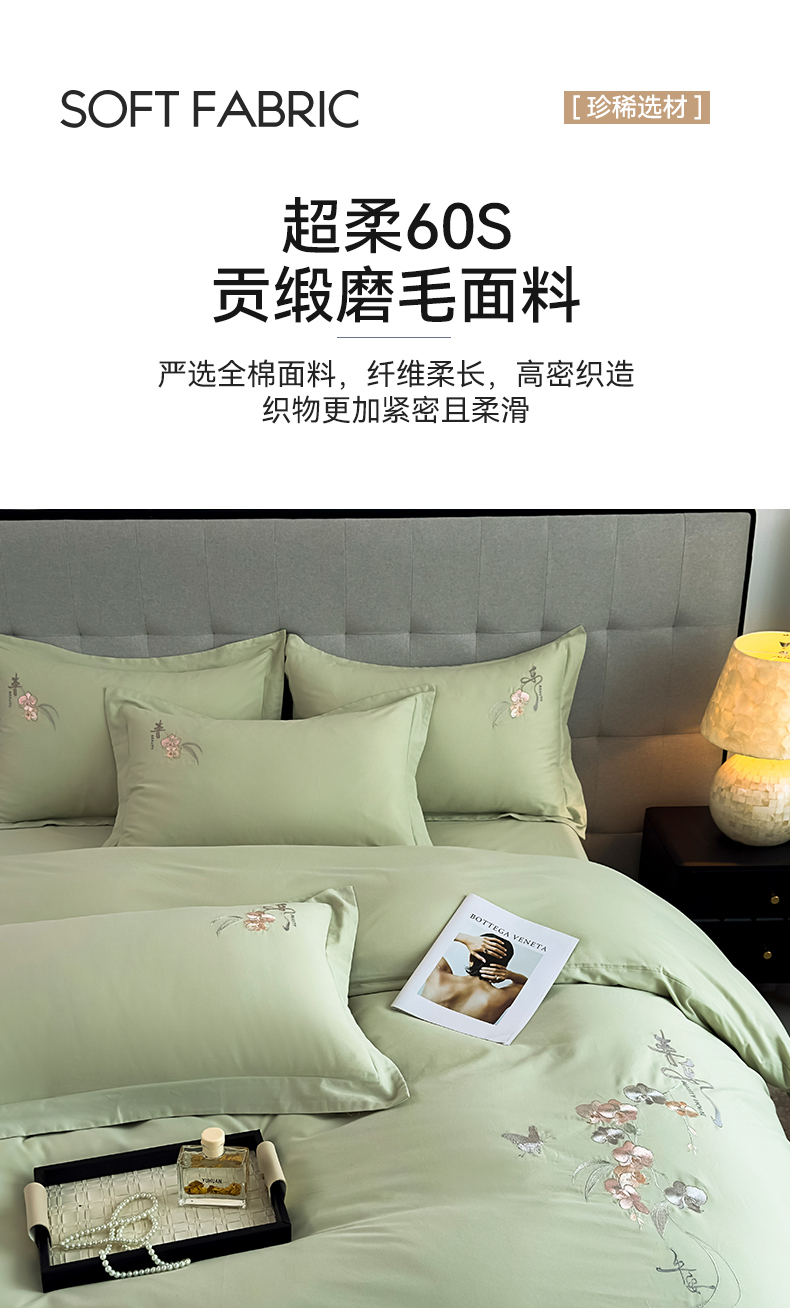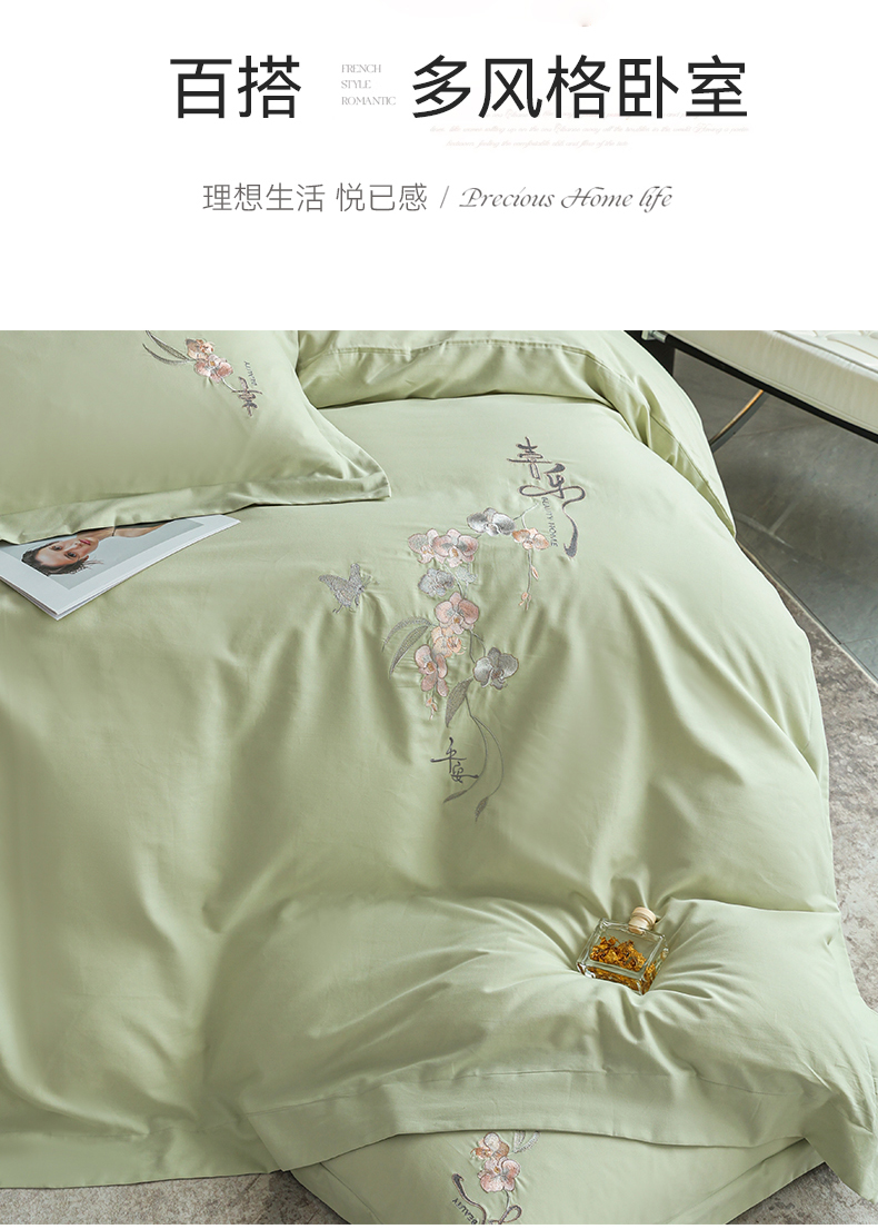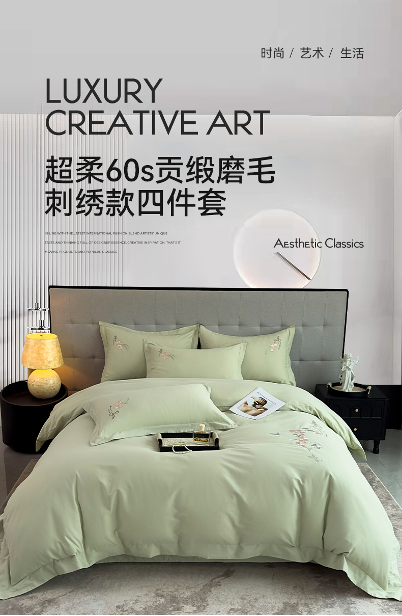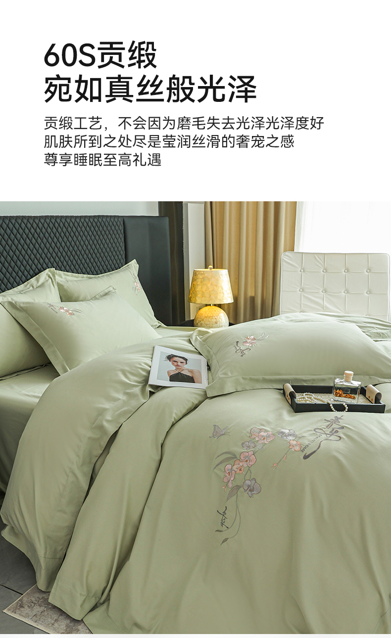 当前位置: 91家纺网 > 商品网购 > 床品套件 > 四件套 > 普通磨毛四件套 > 曼秀琳家纺 2025秋冬新款超柔60s贡缎磨毛刺绣款套件四件套 平安喜乐-澡泽绿
