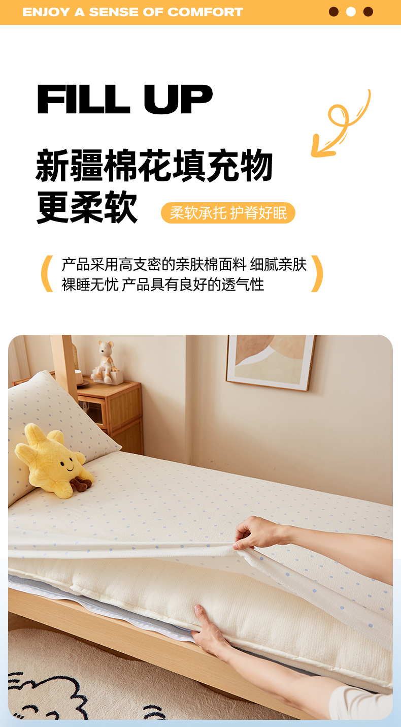 当前位置: 91家纺网 > 商品网购 > 床垫/床褥 > 普通床垫 > 梦镜家纺 2025新款A类云感水洗棉印花床褥 海盐汤圆