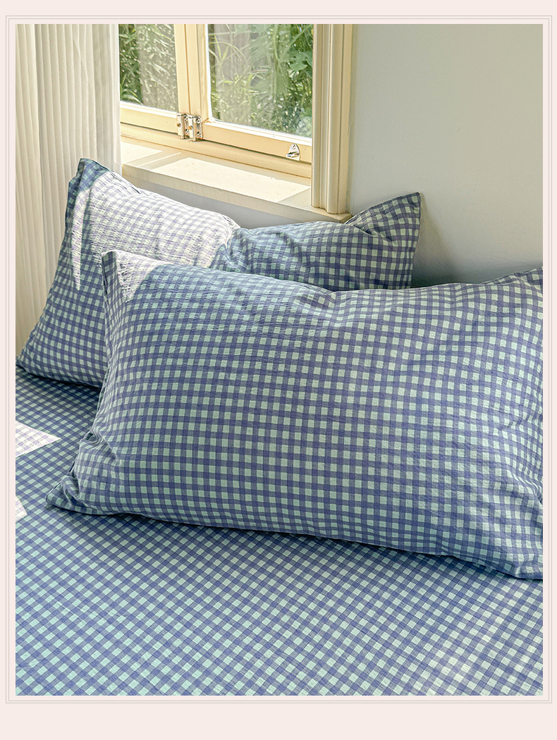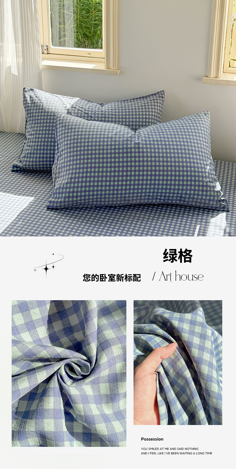 商品名称:多品家纺 2025新款超柔云感双层纱单枕套 绿格
