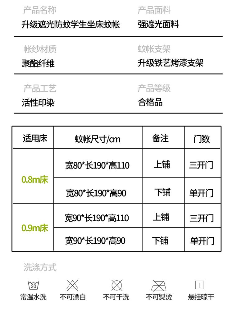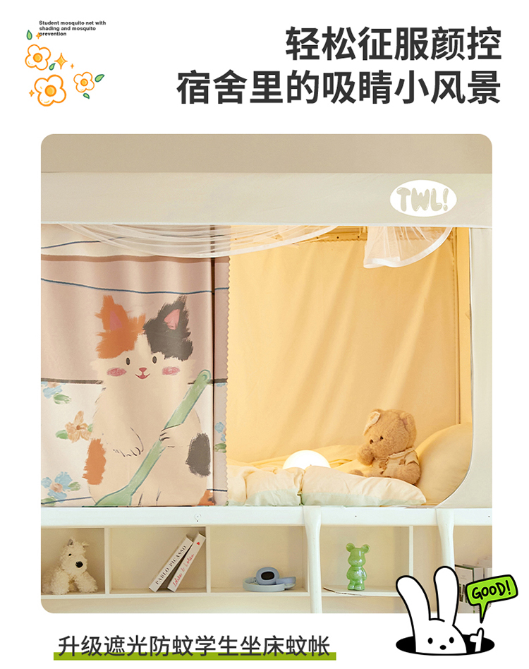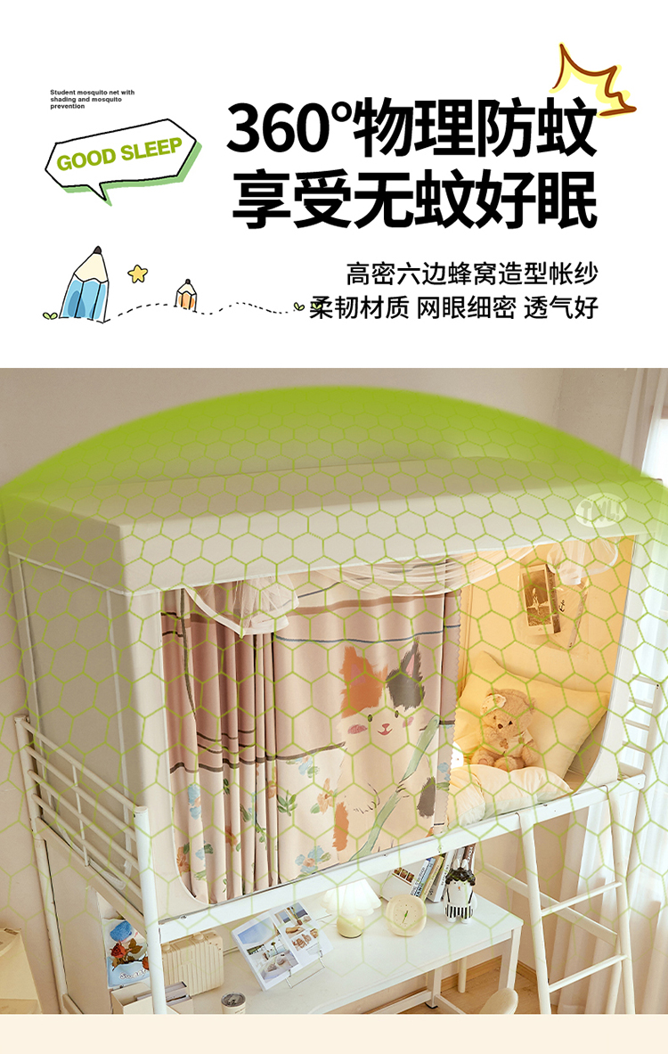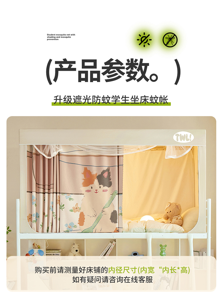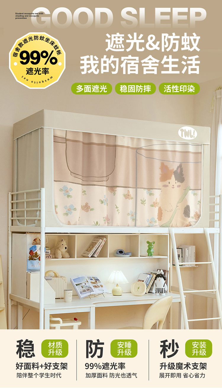 商品名称:(总)2025新款升级静电非涂层环保全遮光床帘款学生上下铺蚊帐宿舍单人床通用印花