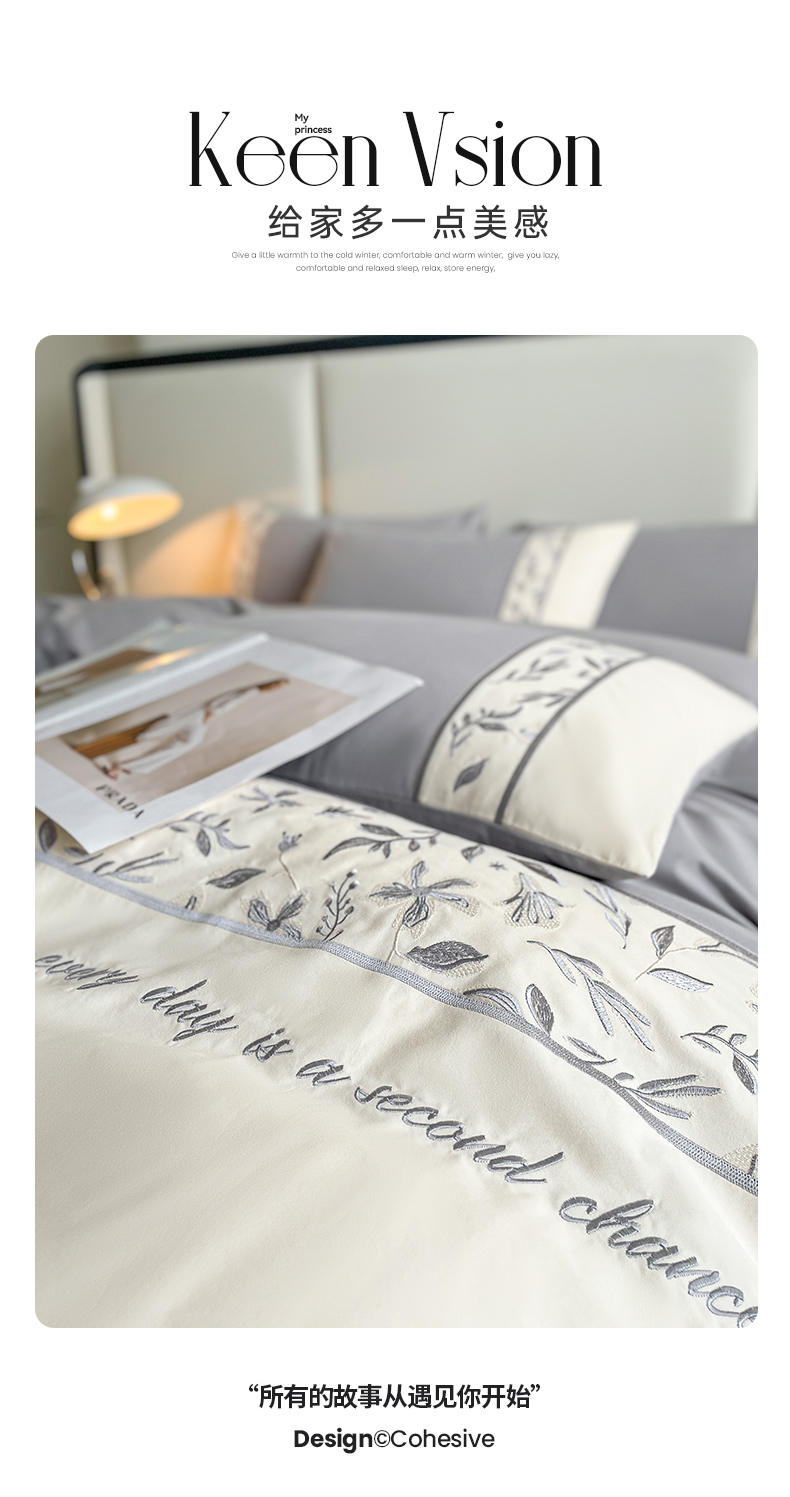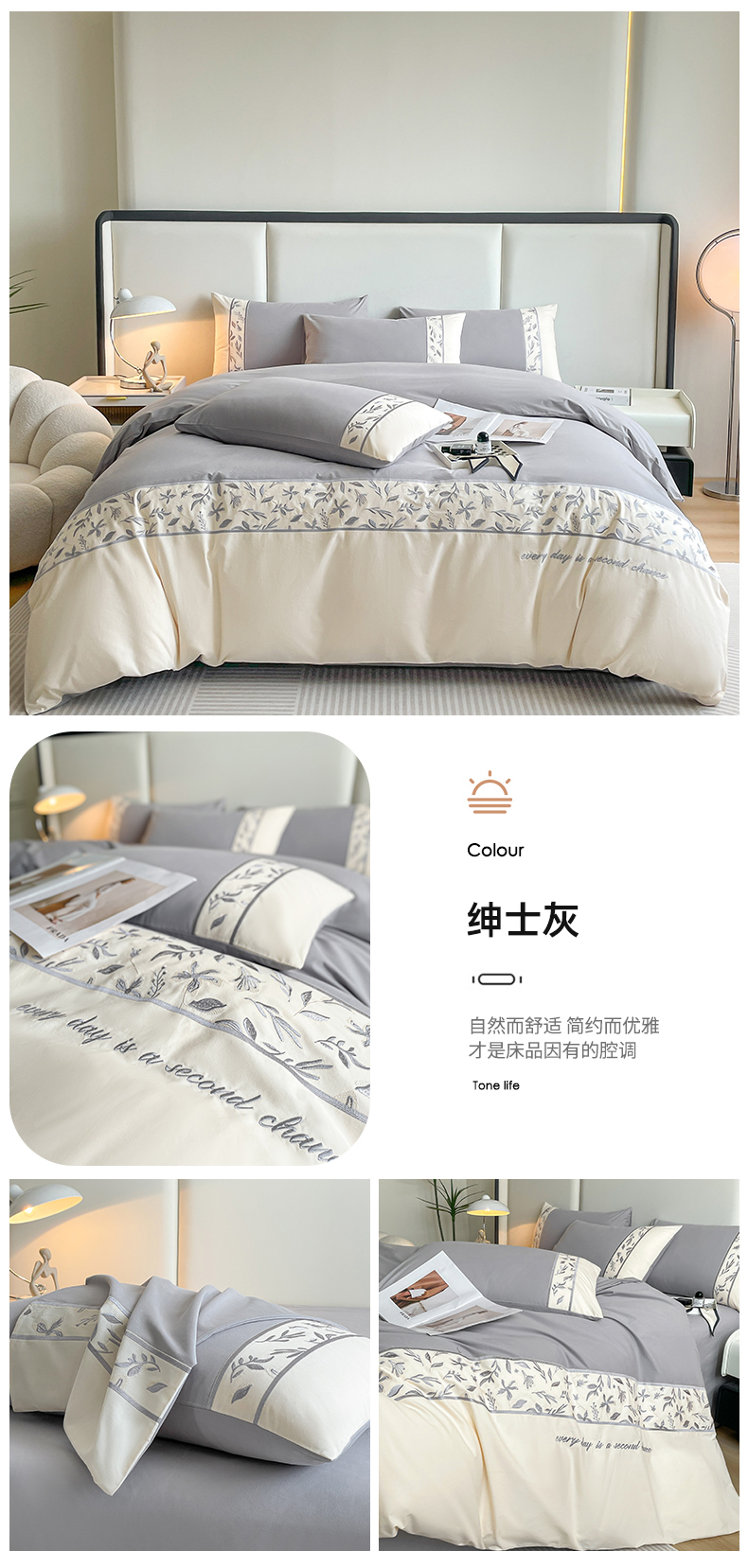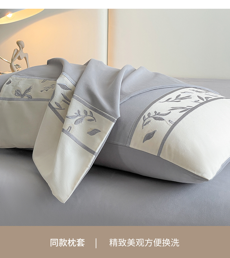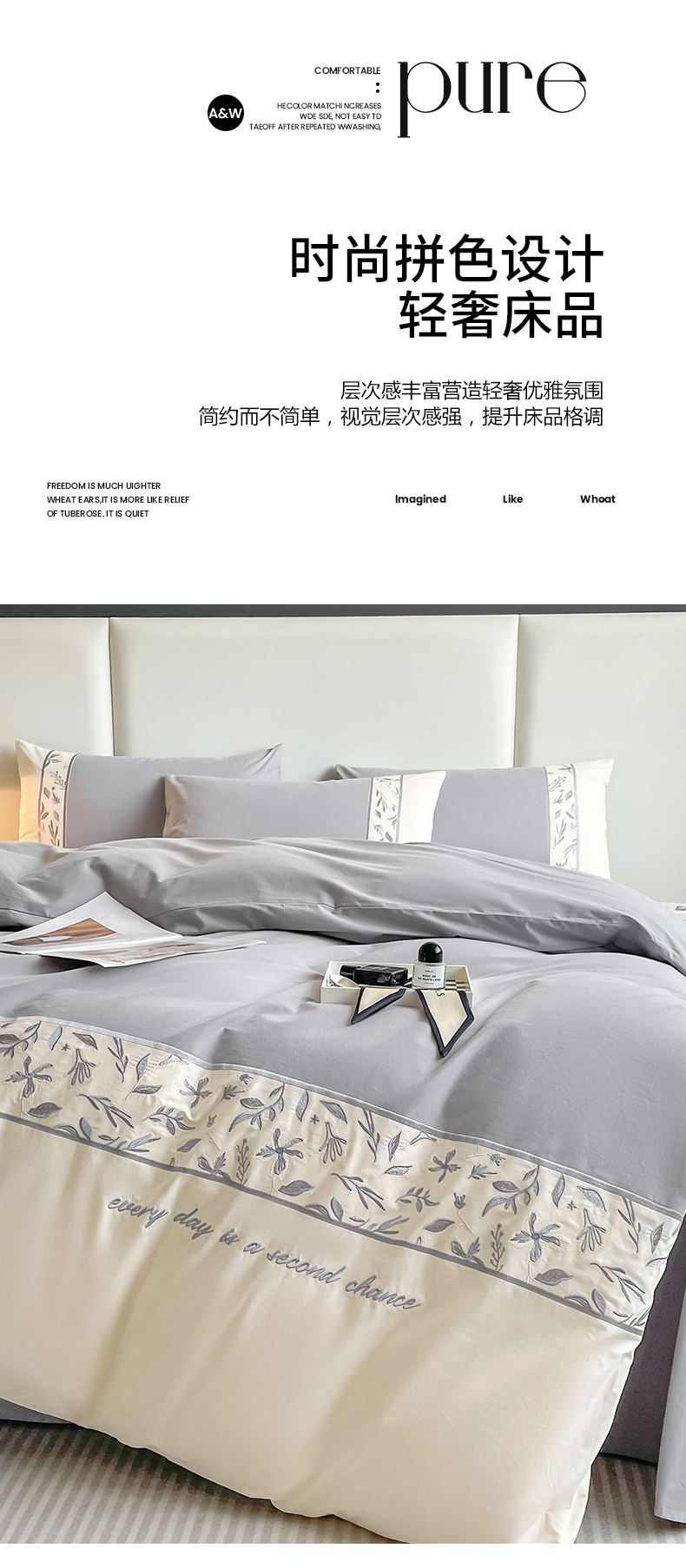 (总)桃园 2025新款纯棉全棉长绒棉刺绣绣花四件套(高端礼盒)-叶语,叶语-飘蓝,叶语-轻奢粉,叶语-绅士灰,叶语-香槟金
