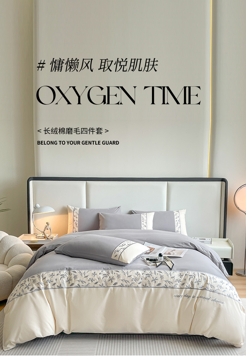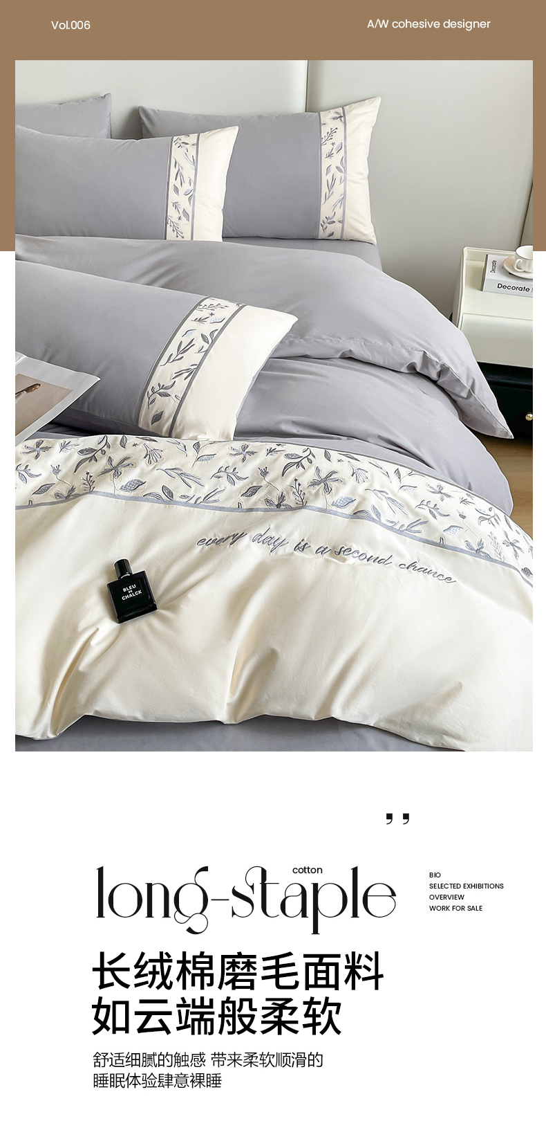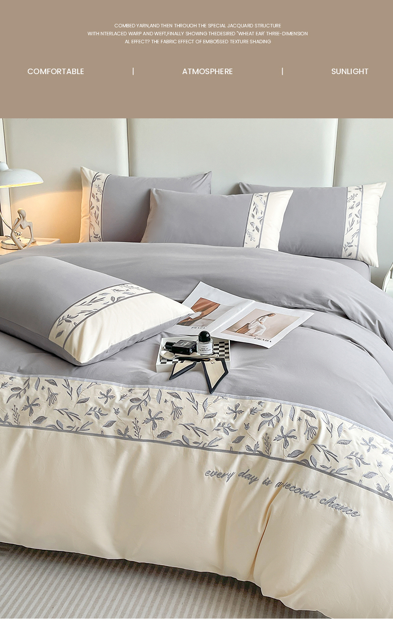 (总)桃园 2025新款纯棉全棉长绒棉刺绣绣花四件套(高端礼盒)-叶语,叶语-飘蓝,叶语-轻奢粉,叶语-绅士灰,叶语-香槟金