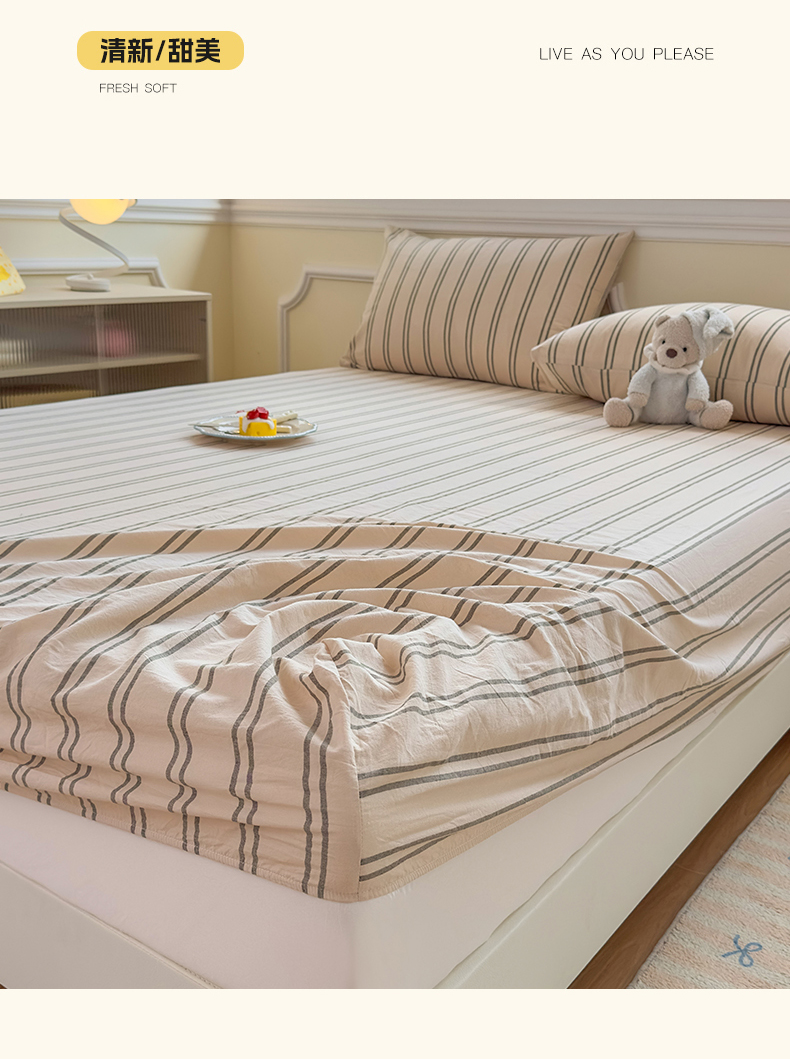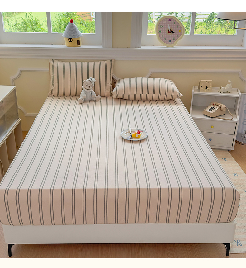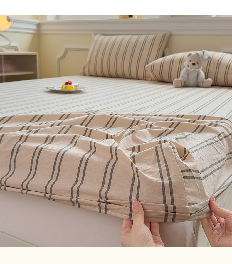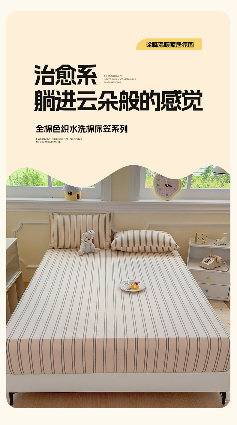 菡宝 2025新款全棉纯棉色织水洗棉单单床笠 中古绿条