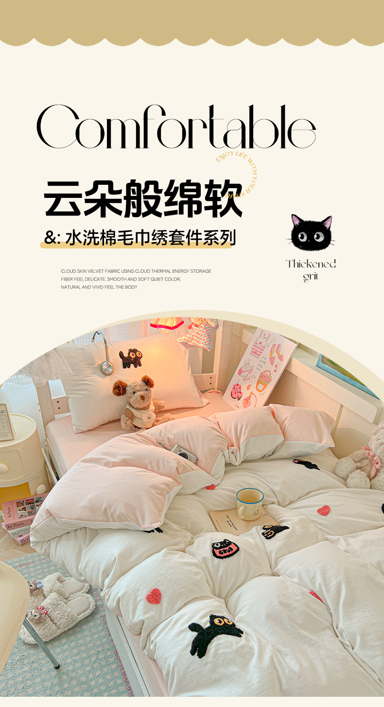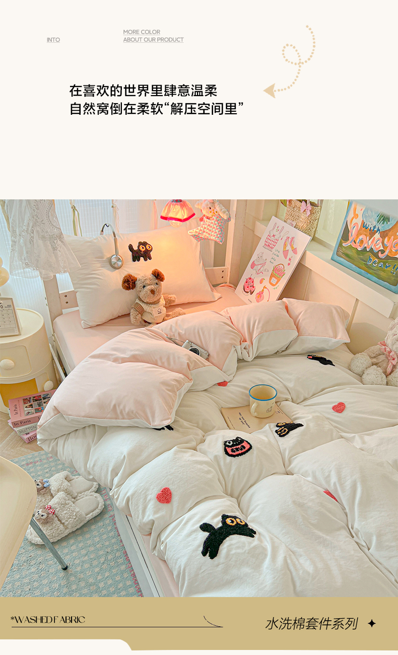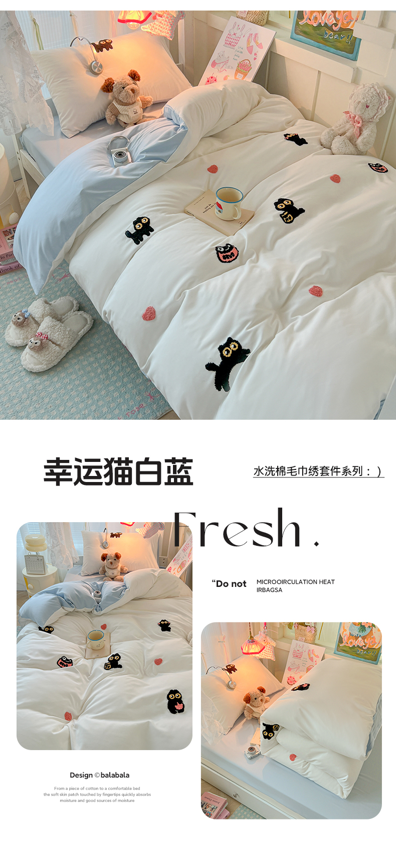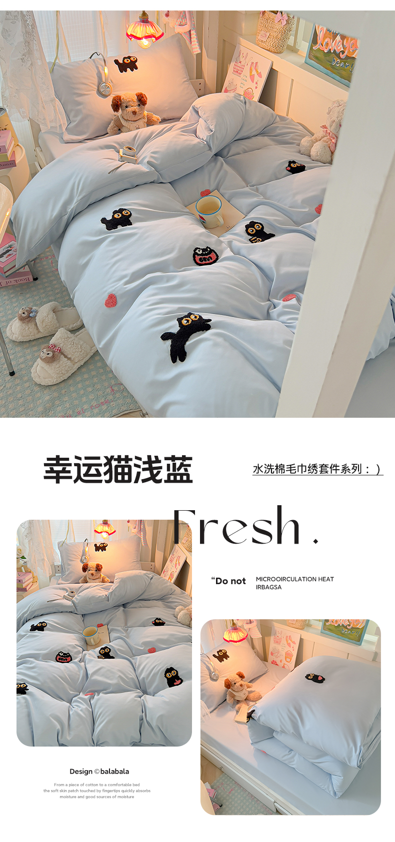 当前位置: 91家纺网 > 商品网购 > 床品套件 > 四件套 > 水洗棉四件套 > 韩巢家纺 2025新款学生宿舍寝室上下铺水洗棉毛巾绣被套床单三四件套-幸运猫 幸运猫白浅粉