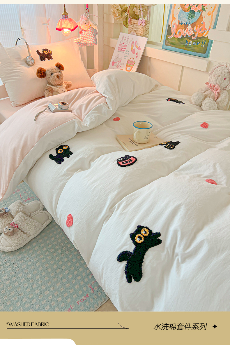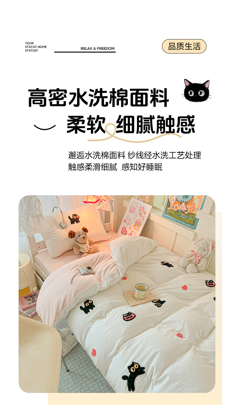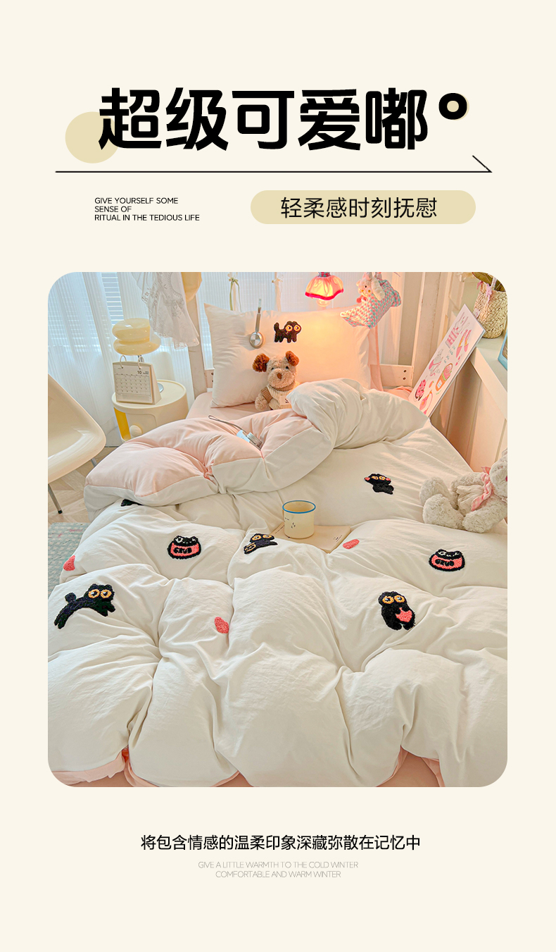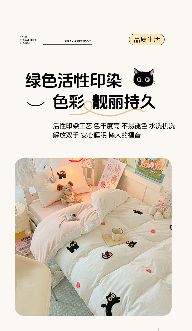 当前位置: 91家纺网 > 商品网购 > 床品套件 > 四件套 > 水洗棉四件套 > 韩巢家纺 2025新款学生宿舍寝室上下铺水洗棉毛巾绣被套床单三四件套-幸运猫 幸运猫白浅粉