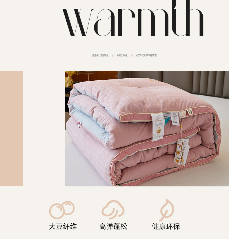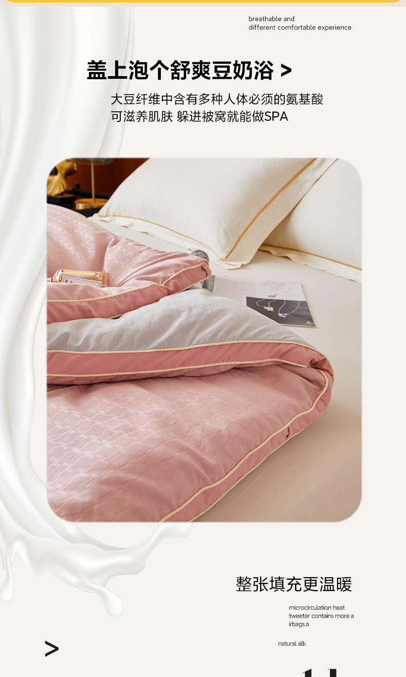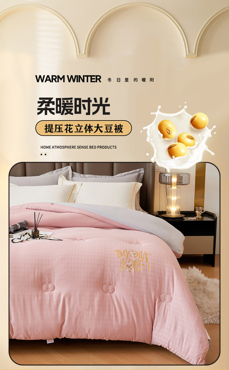 (总)VIP被业 2025新款60S立体全棉大豆被子被芯,白色,粉色,灰色