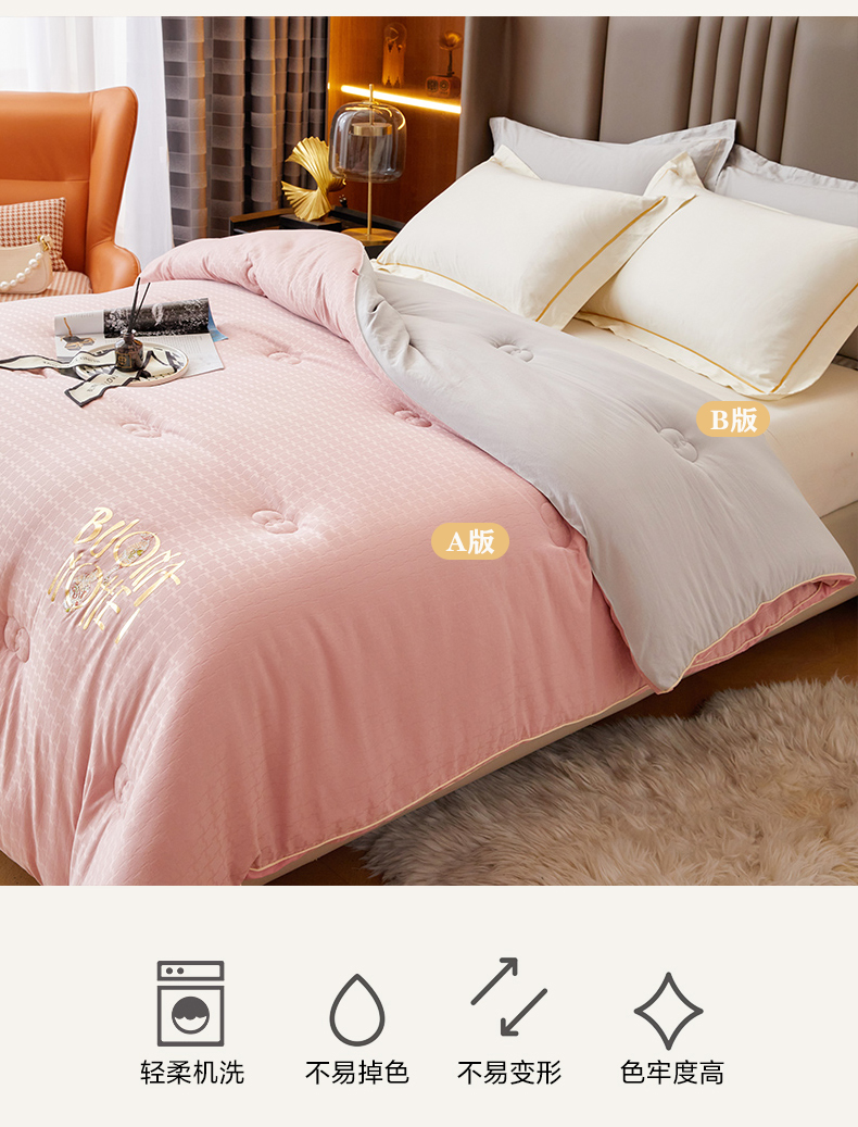 • 91家纺网 家纺一手货源 找家纺 (总)VIP被业 2025新款60S立体全棉大豆被子被芯,白色,粉色,灰色