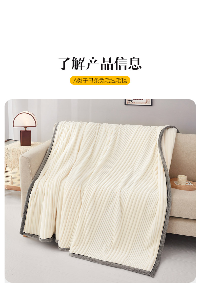 商品名称:(总)肖恩毯业2025新款子母条兔毛绒毛毯盖毯休闲毯绒毯毯子跨境专供可打卷外贸出口可定制尺寸