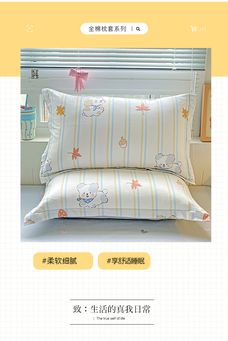 (总)恩泽 2024新款ins风全棉单品枕套,爱心小熊,安心宝贝,盎然春色,白桃公主,北极星,波波熊,布朗熊,草莓小恐龙,宠物派对,出水芙蓉,冬日嘉年华,豆蔻年华,多米熊咖,法风小香,国宝联盟,嗨皮熊,海底派对,海底世界 蓝,花都丽影,花香馥郁,花语嫣然,皇家学院 灰,几何旋律 灰,橘色心情,可比乐园,蓝色心情,玛格丽,漫步时光,玫瑰佳人,萌萌兔,梦人花香,喵喵派对,莫兰迪,皮皮狗,浅浅花漾粉,浅浅花漾蓝,思维空间 灰,天真小熊,米洛,芳华,菲颂,橘子狗,罗利,小黑猫,偏爱,清风絮语,春的色彩,摇曳花开,游蝶戏梦,紫霞,碧城春泥,郁金香兔兔,心动熊仔,星光条纹,许愿精灵 咖,音乐小熊,遇见心情,月下花夕,安逸胖哒,斑点小狗