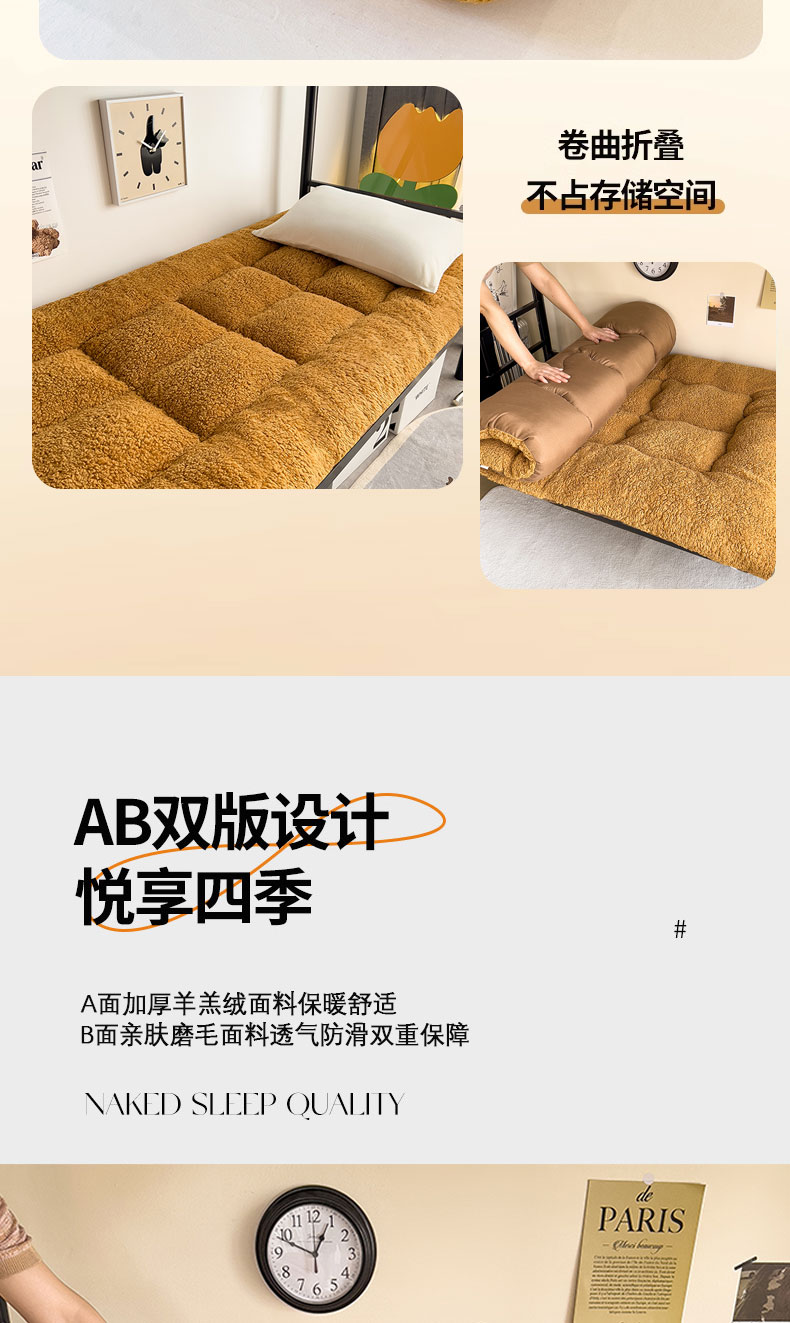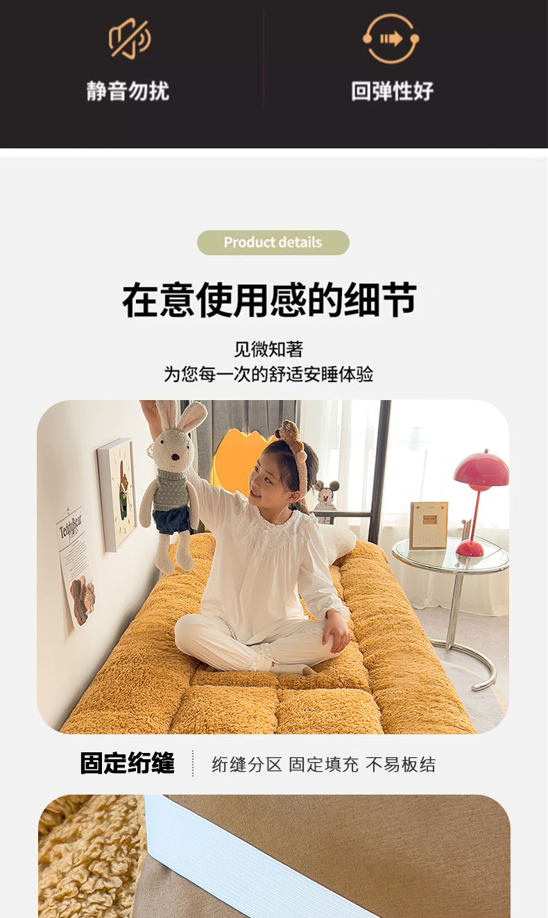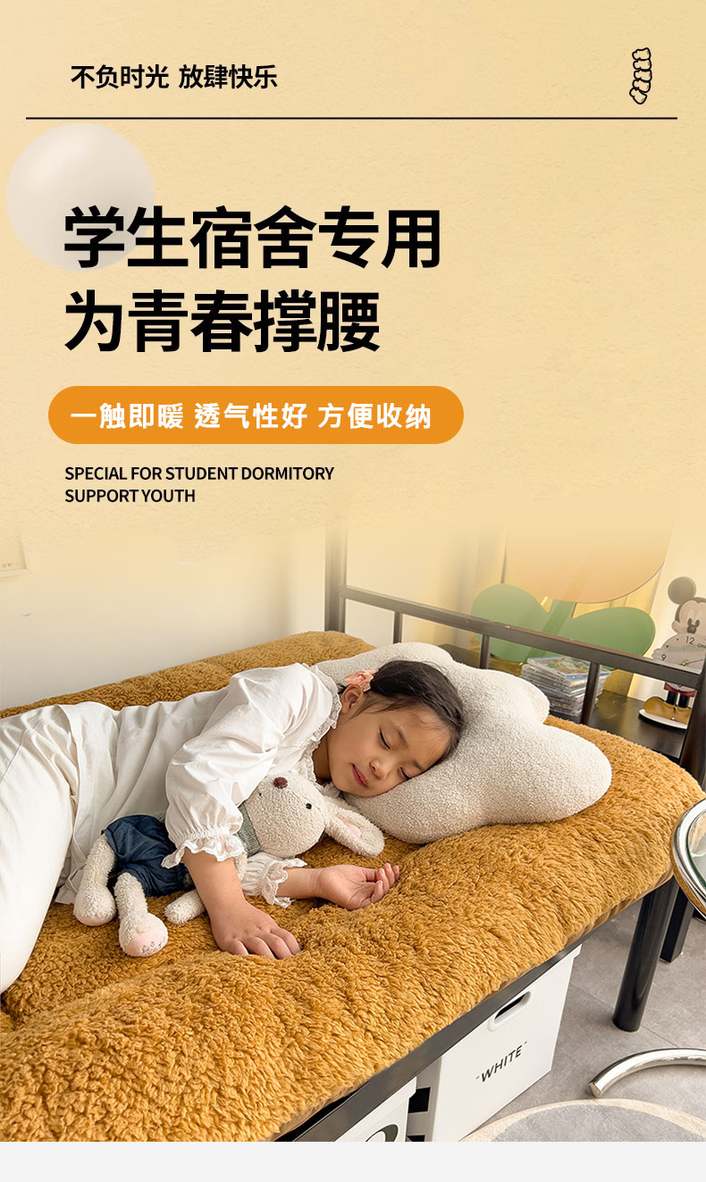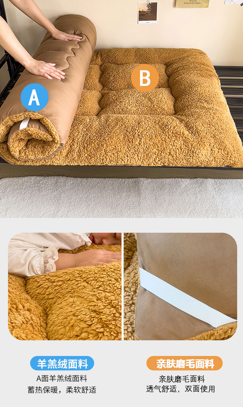 (总)缦纱 2025新款保暖羊羔绒暖冬床垫学生季宿舍床垫-学生床垫,灰色,咖啡色,蓝色,绿色,驼色