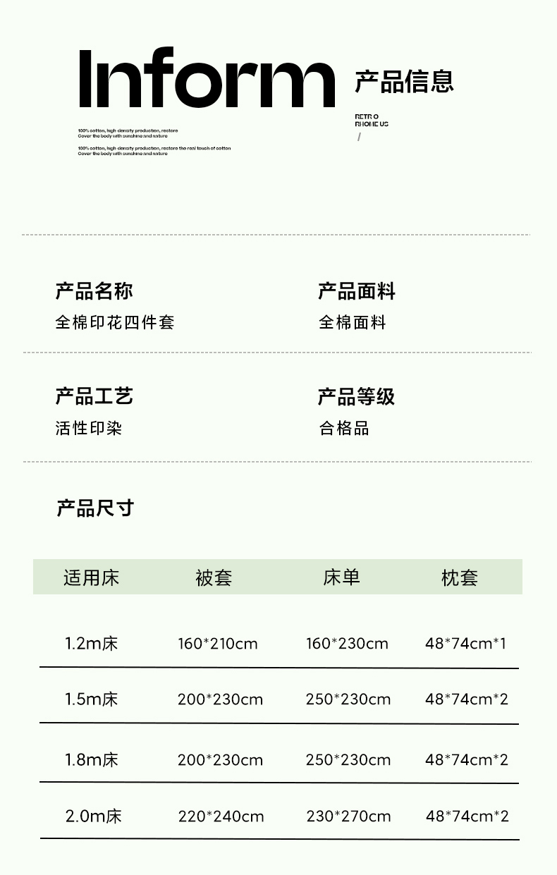 1.2m床笠款四件套 | ¥80.00 |