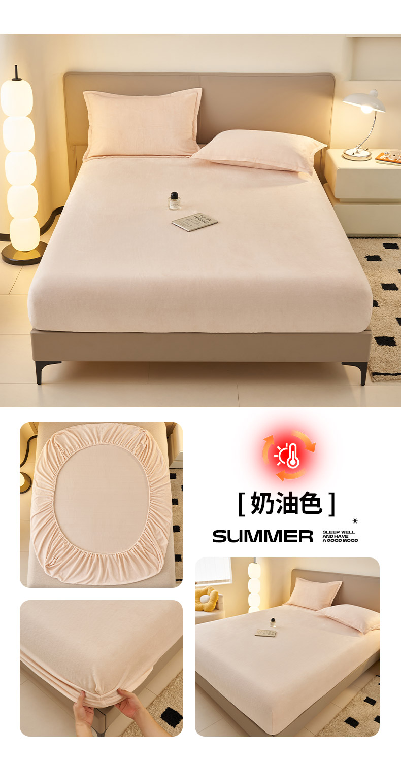 • 91家纺网 家纺一手货源 找家纺 简爱 2025新款纯色牛奶绒单床笠 奶油色