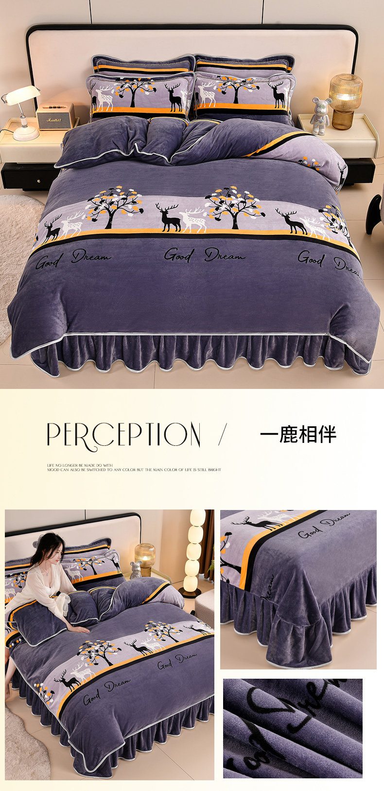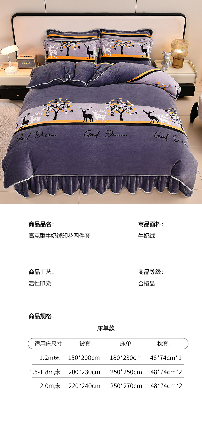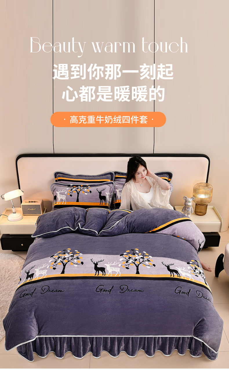 当前位置: 91家纺网 > 商品网购 > 床品套件 > 四件套 > 牛奶绒四件套 > 2025直播爆款印花牛奶绒四件套8斤法莱绒印花四件套 一鹿相伴