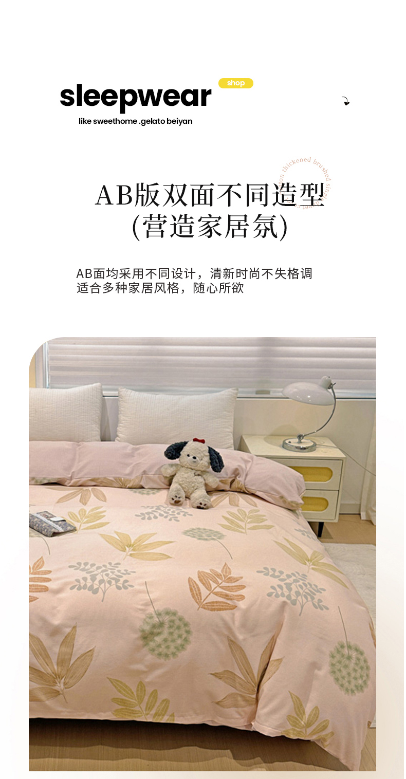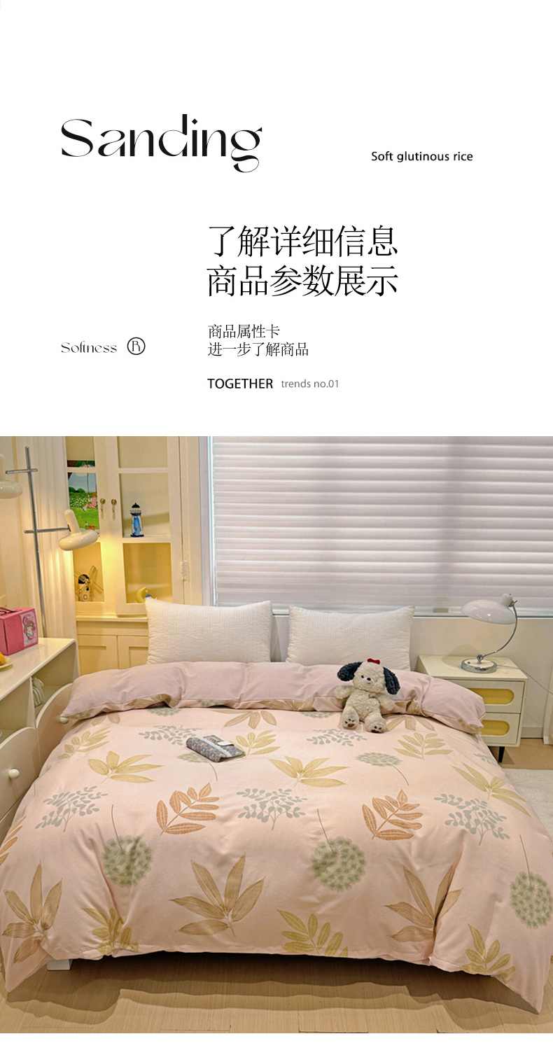 • 91家纺网 家纺一手货源 找家纺 卡普二店 2025新款全棉纯棉磨毛加厚单品系列-被套单件单被套 芊芊叶语