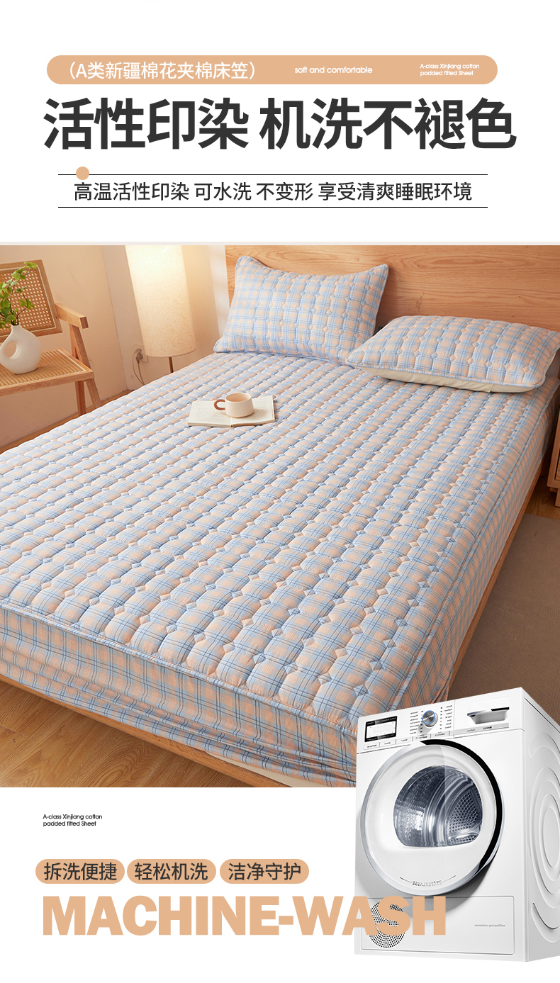 • 91家纺网 家纺一手货源 找家纺 缦吉 2025款A类水洗棉夹棉新疆棉花格子床笠 简语格 灰