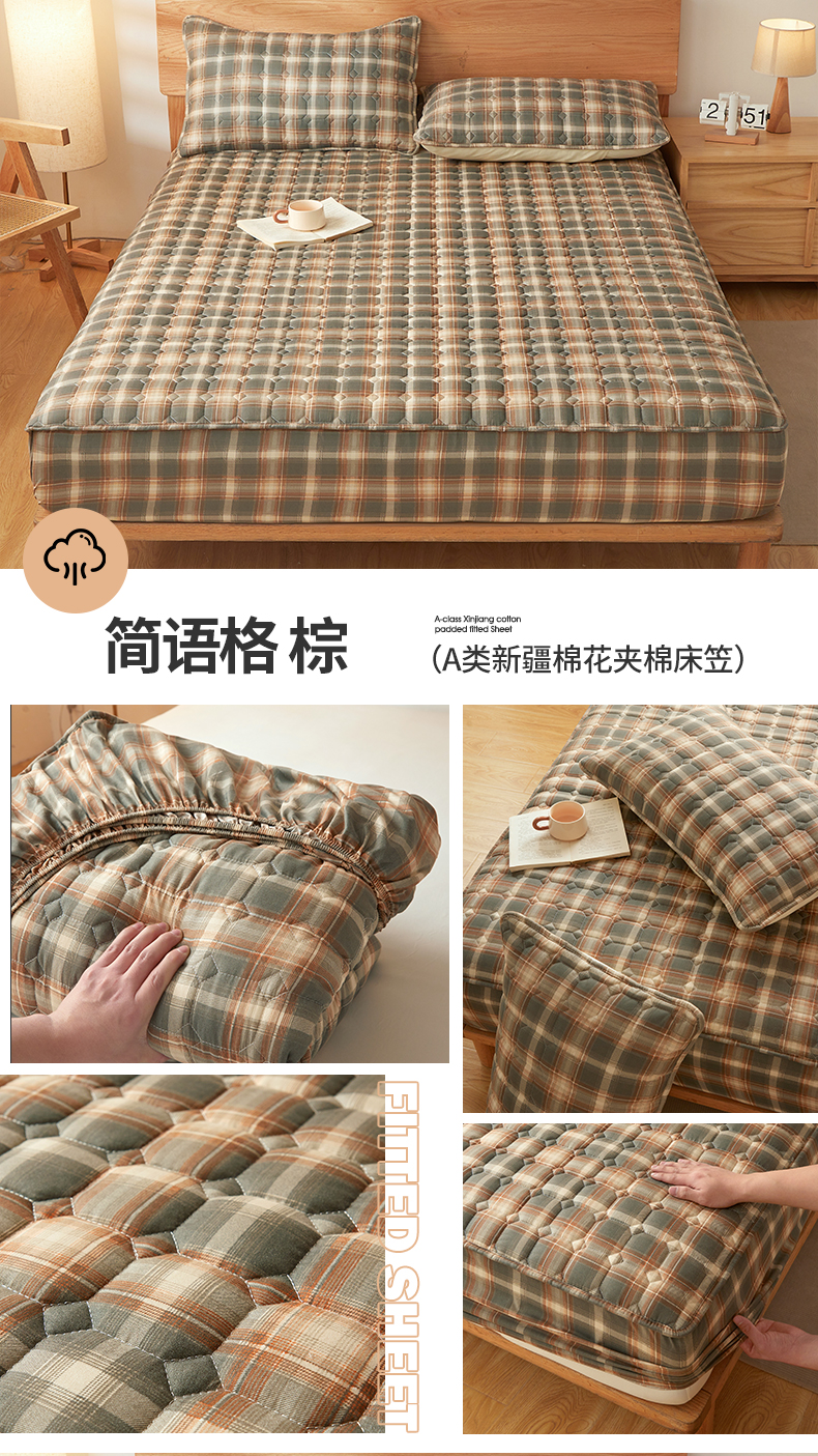 缦吉 2025款A类水洗棉夹棉新疆棉花格子床笠 简语格 灰