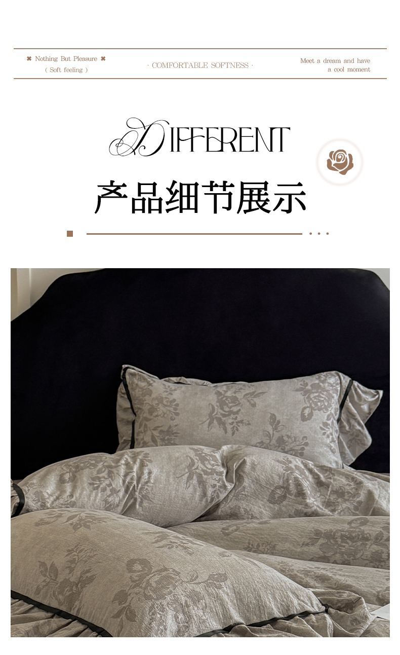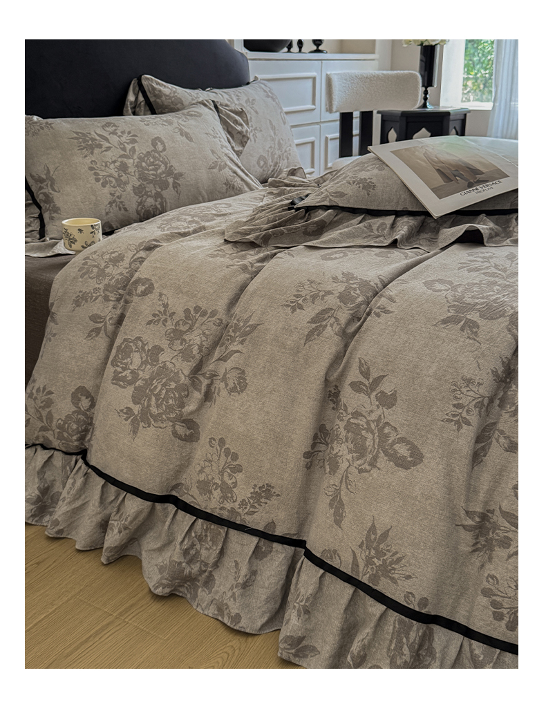 商品名称:吾欢心 2025新款法式加厚复古亚麻皱皱纱印花款四件套 印象巴黎