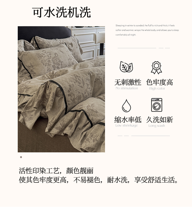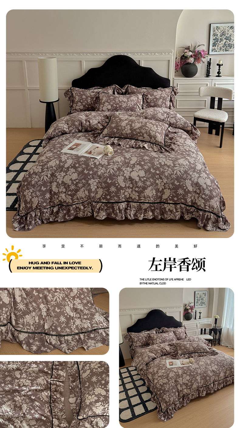 (总)吾欢心 2026春夏新款古法水洗仿棉毛球花边款四件套,半岛花园,茶野,椿屿,丛林小兔,粉豹纹,花颜悦色,咖豹纹,猫猫乐园,萌星人,甜心宝贝,小橘子,幸运小猫