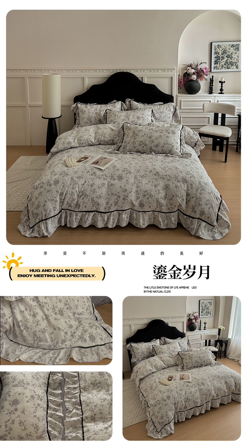 (总)吾欢心 2026春夏新款古法水洗仿棉韩版双层花边四件套,KT猫,斑马,彩色蝴蝶结,卡通小狗,可爱星星人,萌宠宝贝,秘境花园,奶萌小狗,田园趣味,汐颜,小草莓,樱桃派