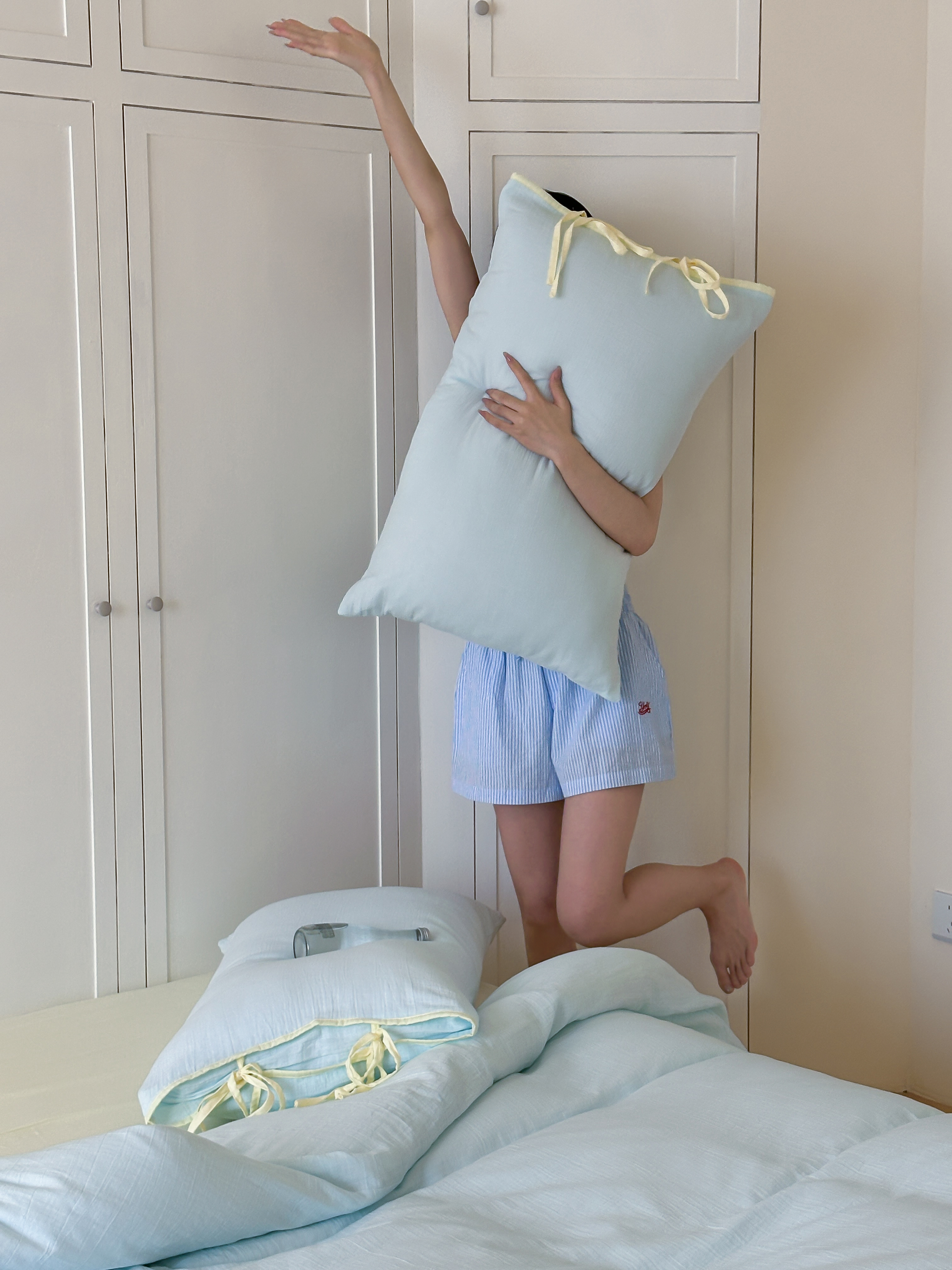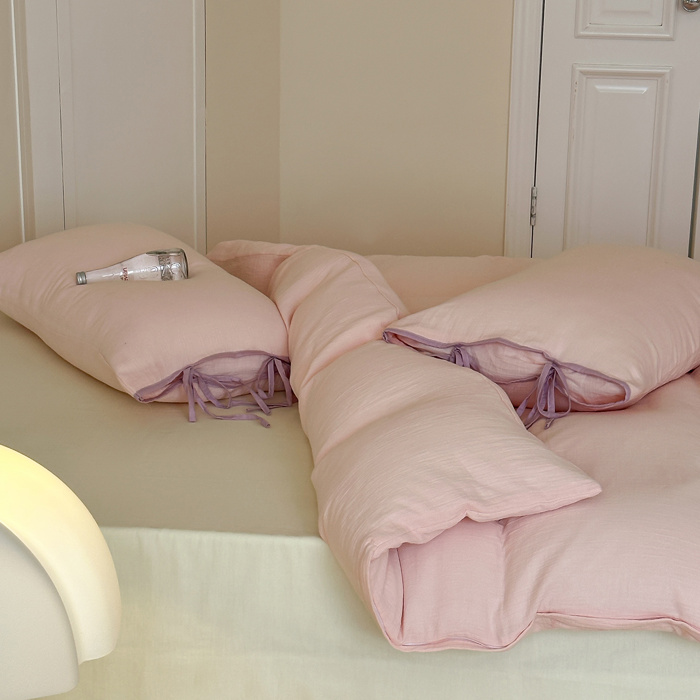 商品名称:(总)小春日和 2025新款纯棉A类婴幼儿母婴纯色双层皱皱纱四件套
