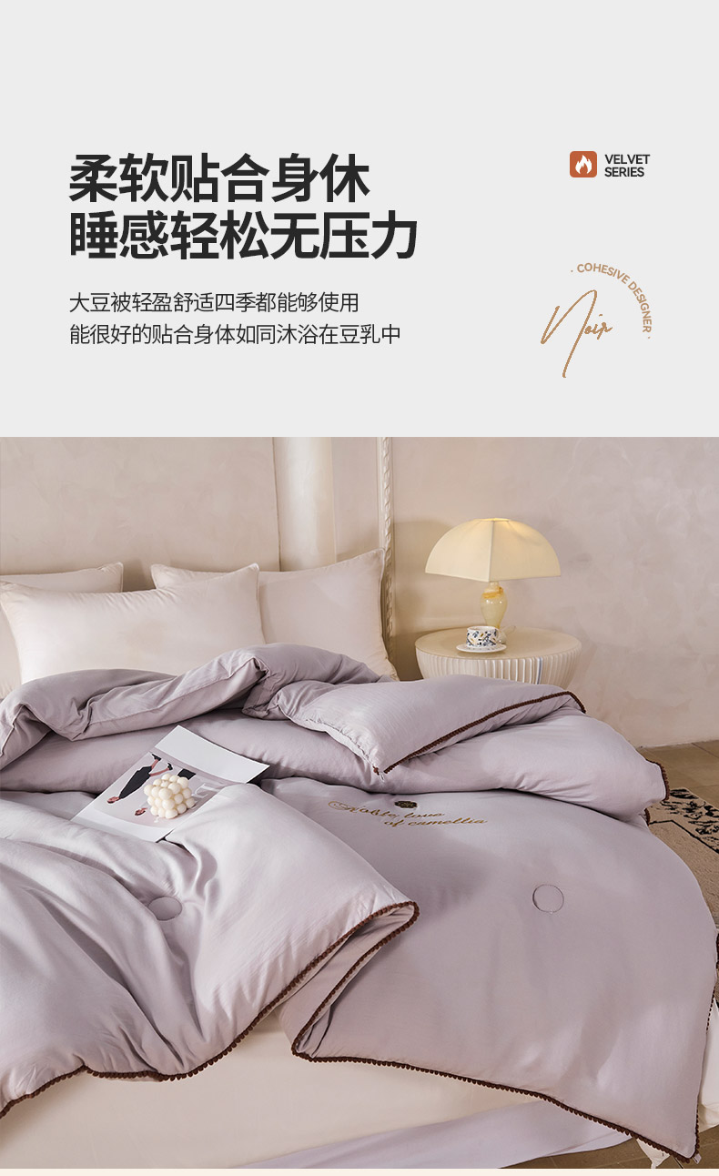爱诗诺家纺 2025年新款3D立体烫画亲肤保暖云纱棉大豆被被子被芯 云纱棉-灰(主图2)