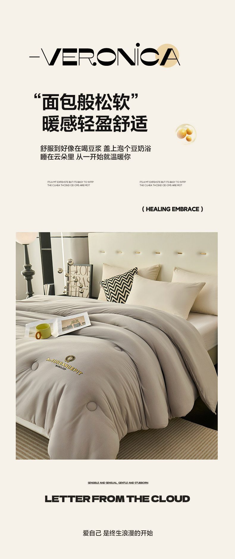 爱诗诺家纺 一件代发2025年新款牛奶丝3D立体烫画大豆被春秋被直播冬被跨境电商被芯学生宿舍被子被芯 牛奶丝-灰
