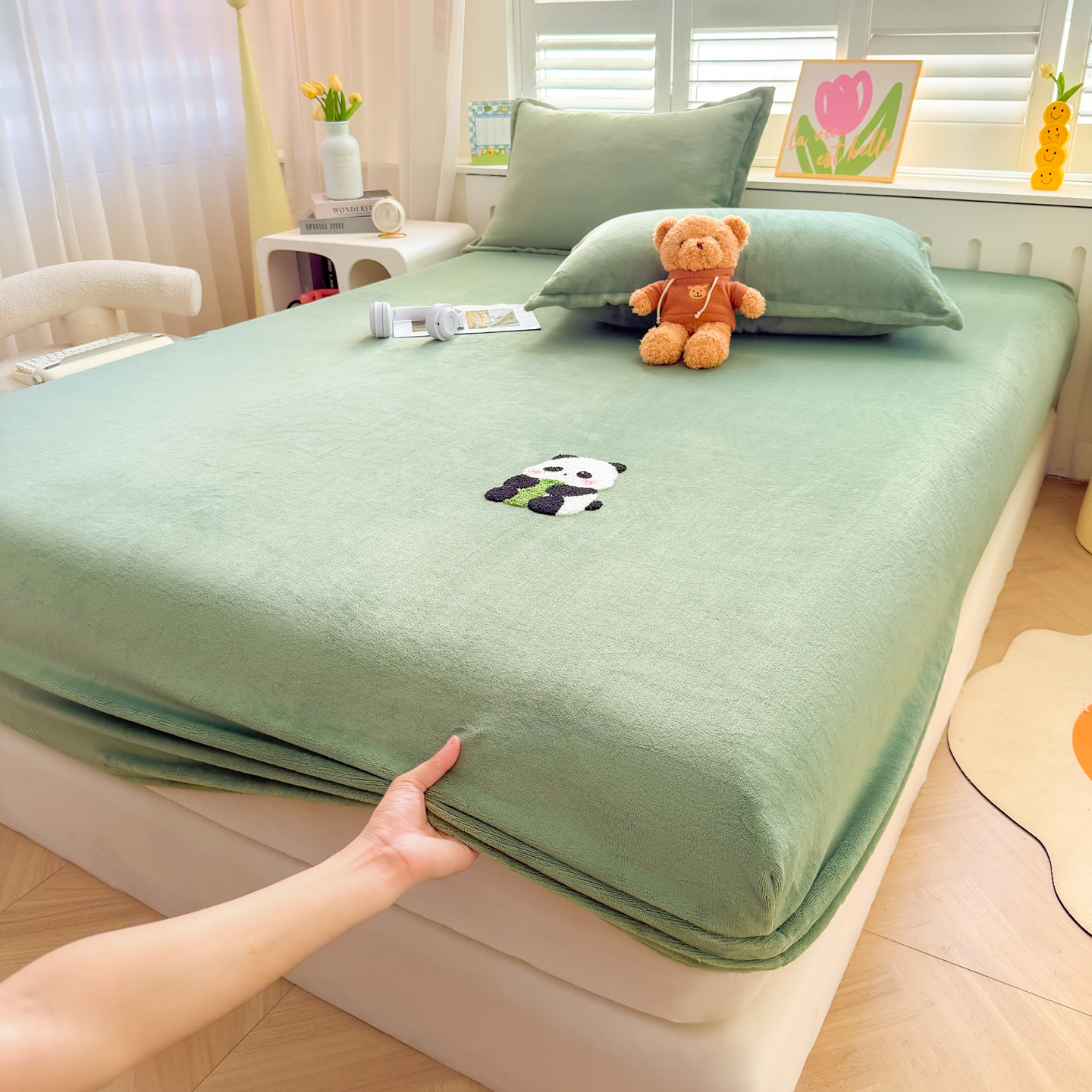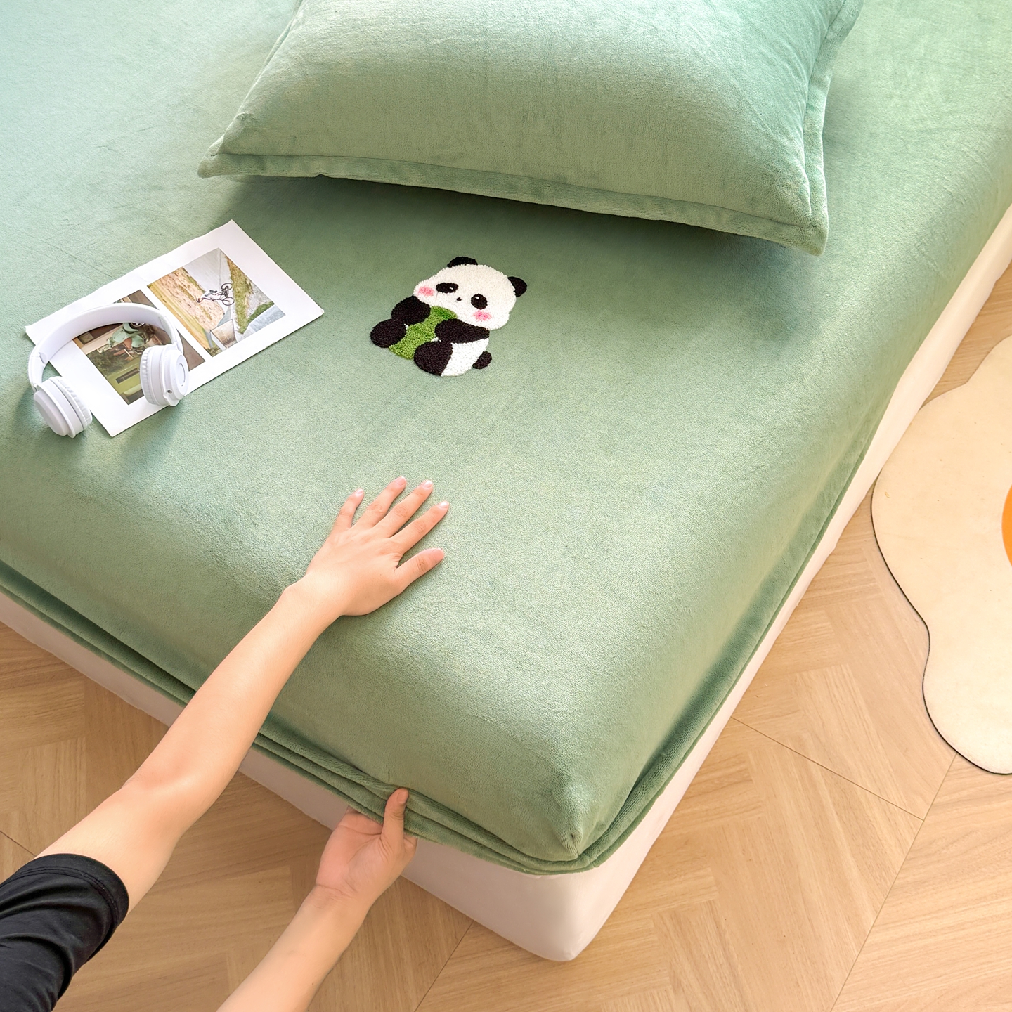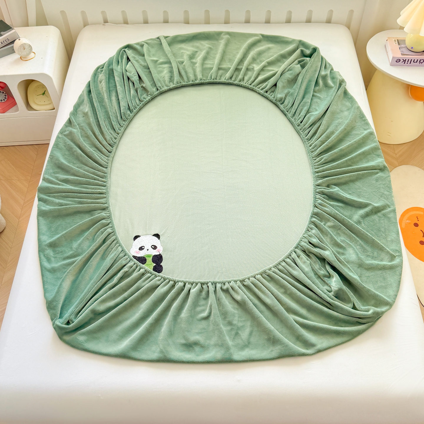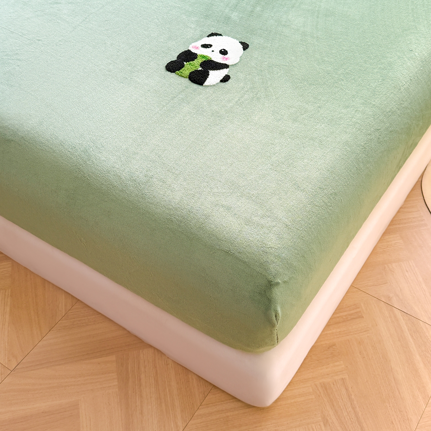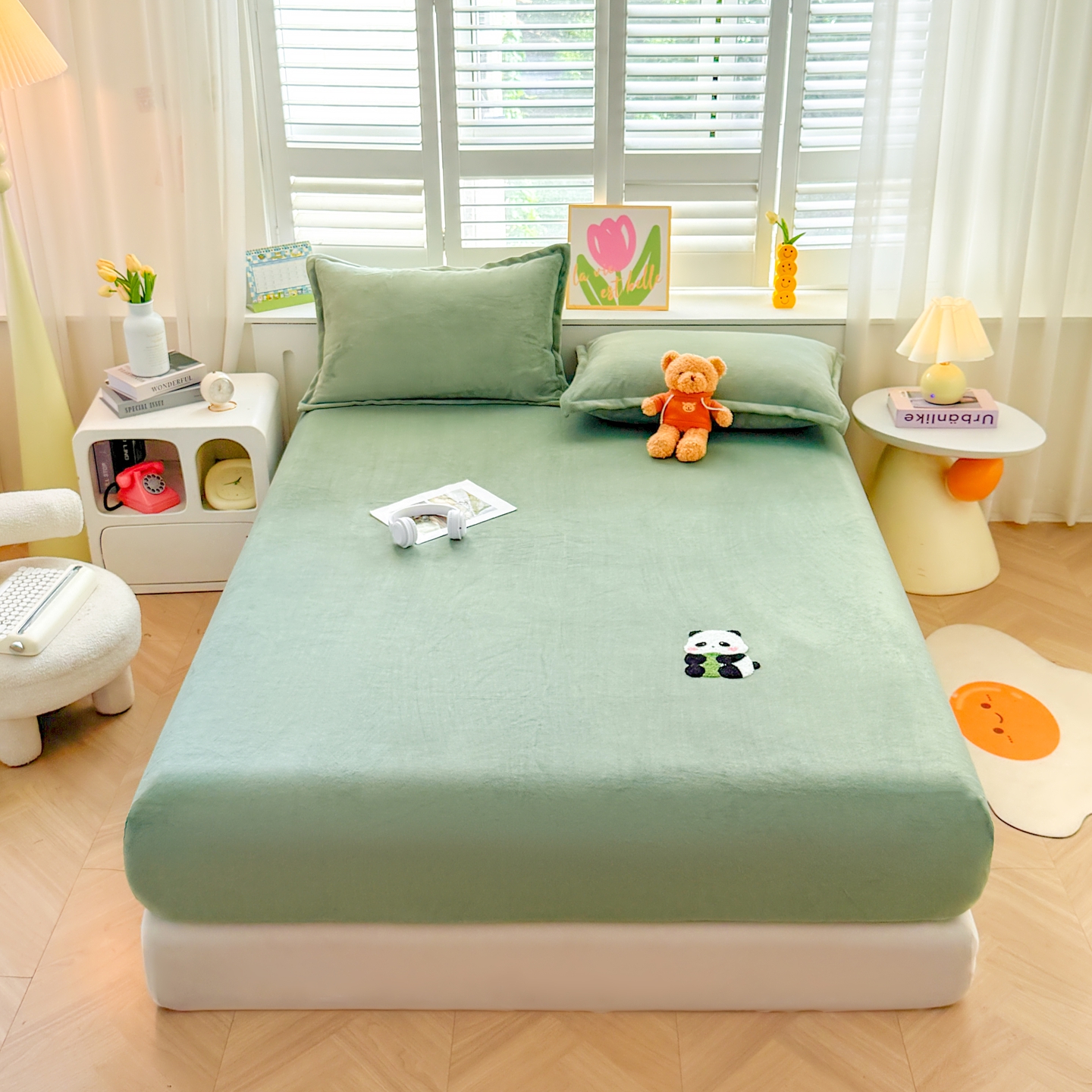 湘之帛 2025新款牛奶绒印花床笠 小熊猫-草绿