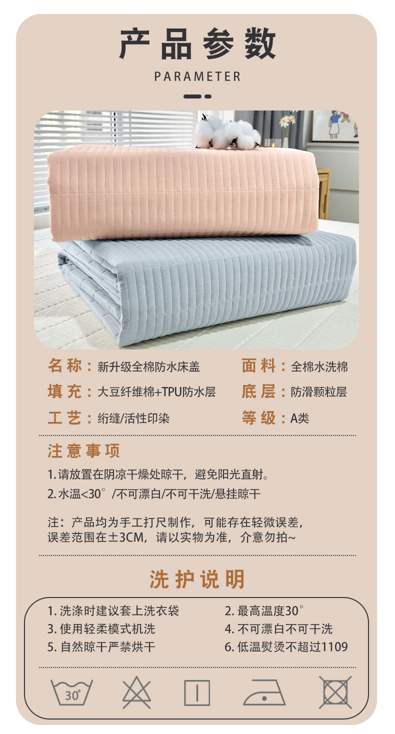 • 91家纺网 家纺一手货源 找家纺 拾小柒 2025新款全棉色织水洗棉夹棉防滑床盖防水纯色床护垫 防水款青灰色