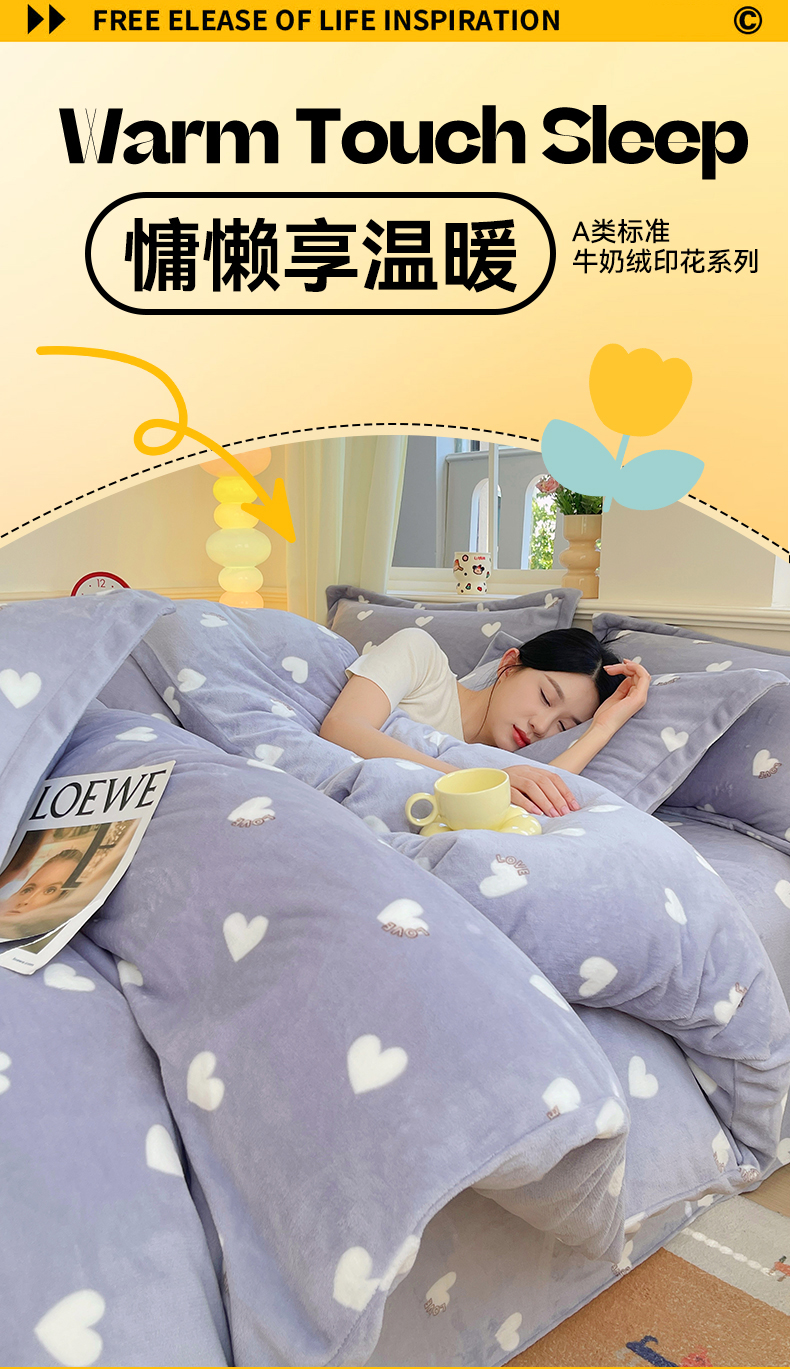 当前位置: 91家纺网 > 商品网购 > 床品套件 > 四件套 > 牛奶绒四件套 > 凯儿2025加厚A类印花牛奶绒单品四件套 心心相印-灰