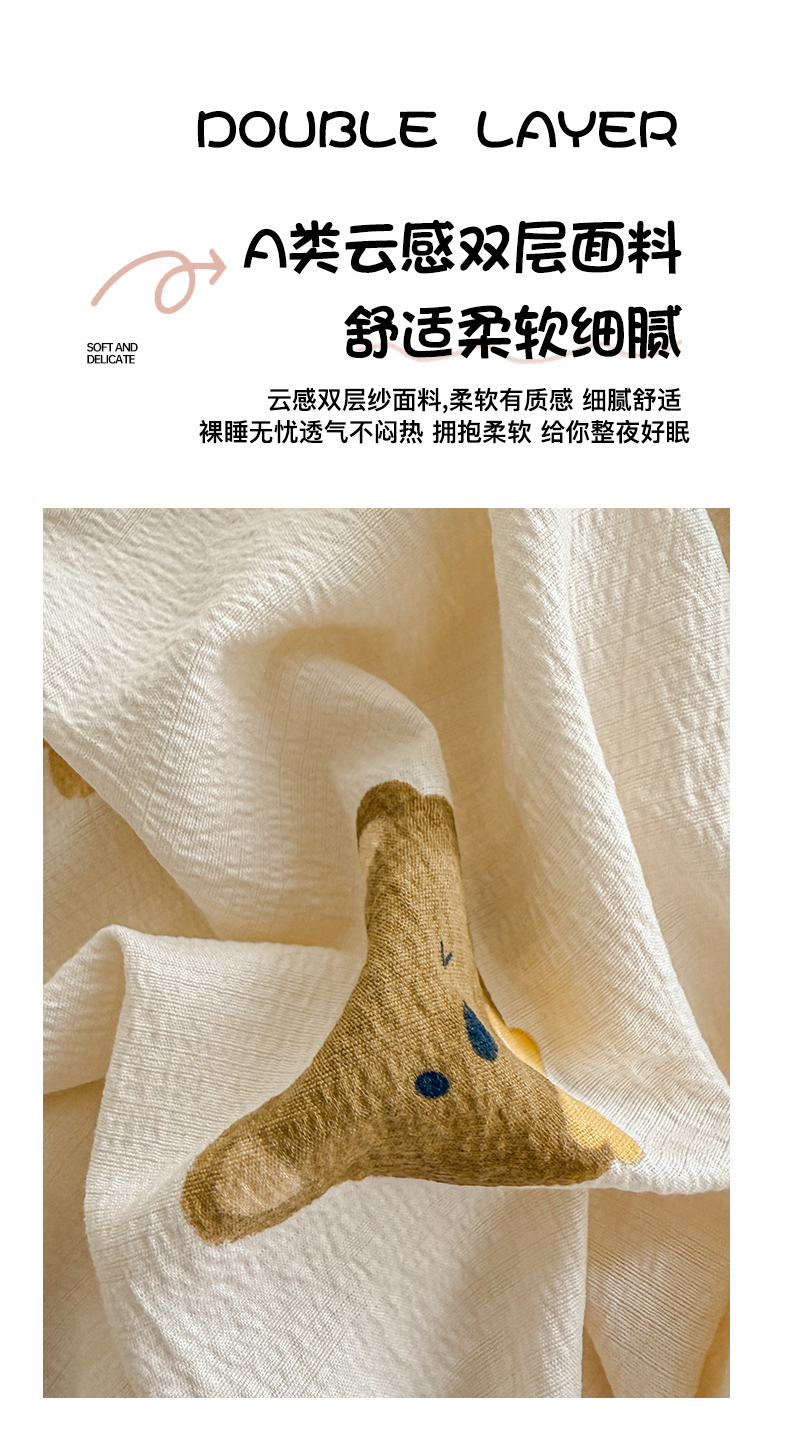 商品名称:晚爱家纺(原晚安家居) 2025新款云感双层纱贝壳边三角针工艺卡通小清新小碎花四件套 风铃