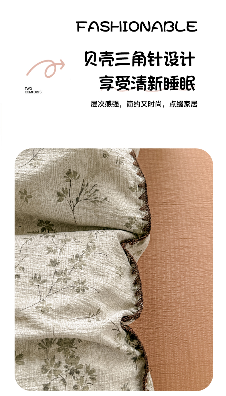 商品名称:晚爱家纺(原晚安家居) 2025新款云感双层纱贝壳边三角针工艺卡通小清新小碎花四件套 紫菊梗