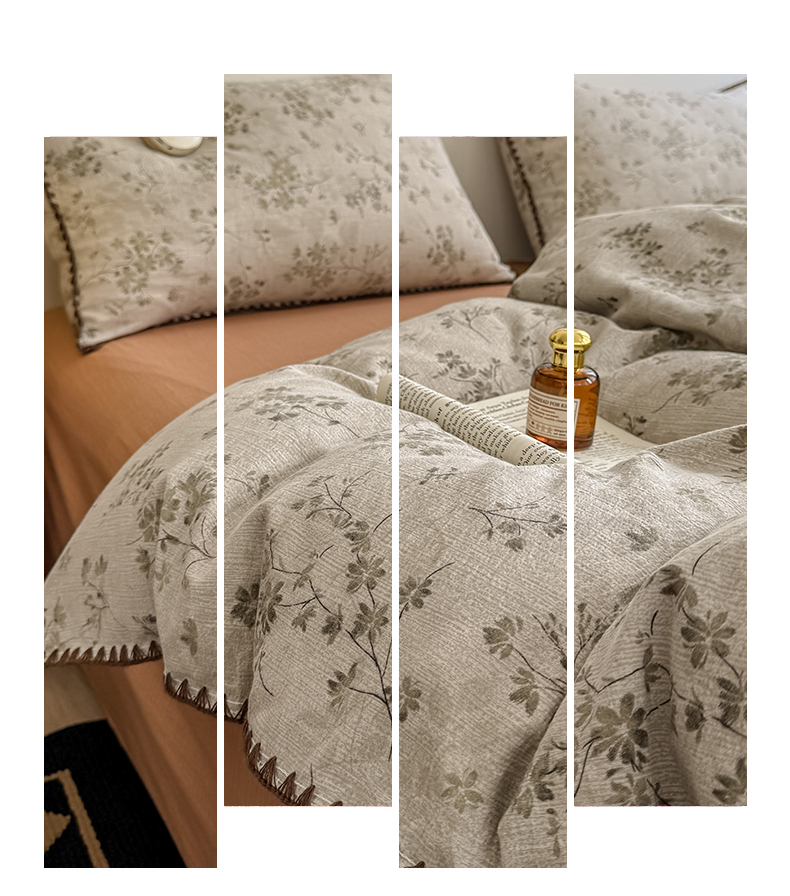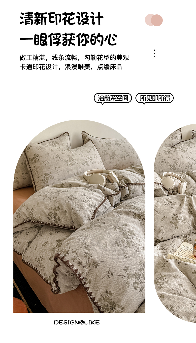 (总)晚爱家纺(原晚安家居) 2025新款A类原麻四件套纽扣款加厚双层纱仿亚麻套件四件套,曼妙花园绿,紫嫣,古堡花园咖,浮华若梦,繁花粉,繁花蓝,枫叶情,秋意浓,深秋咖,水墨江南,田园咖,晚秋,向阳花开,绽放