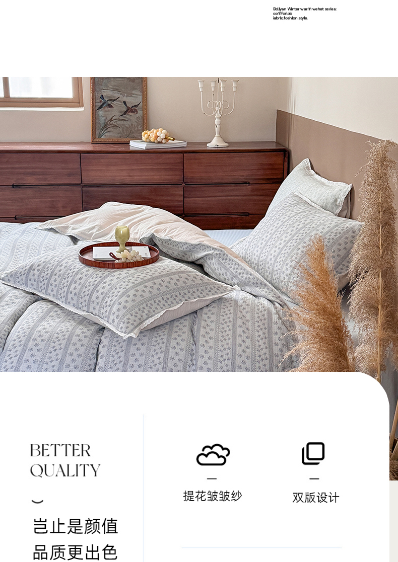 (总)玛奇朵 2025秋冬新品韩国色织A类三层皱皱纱系列四件套,山屿,时序,巷往
