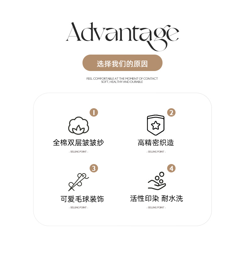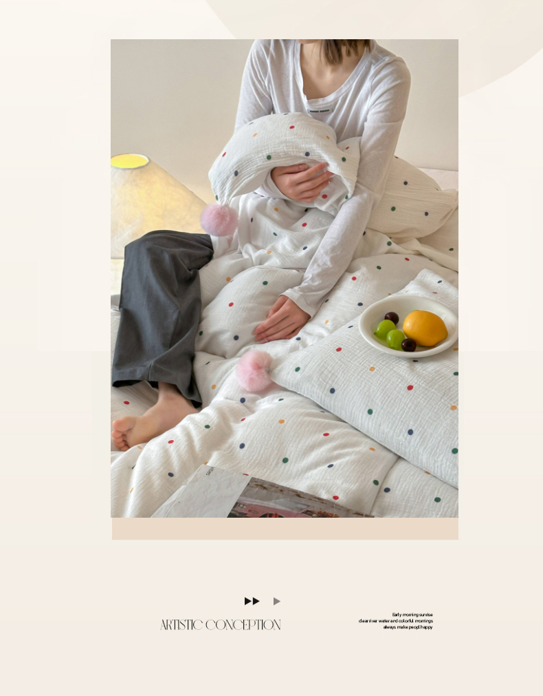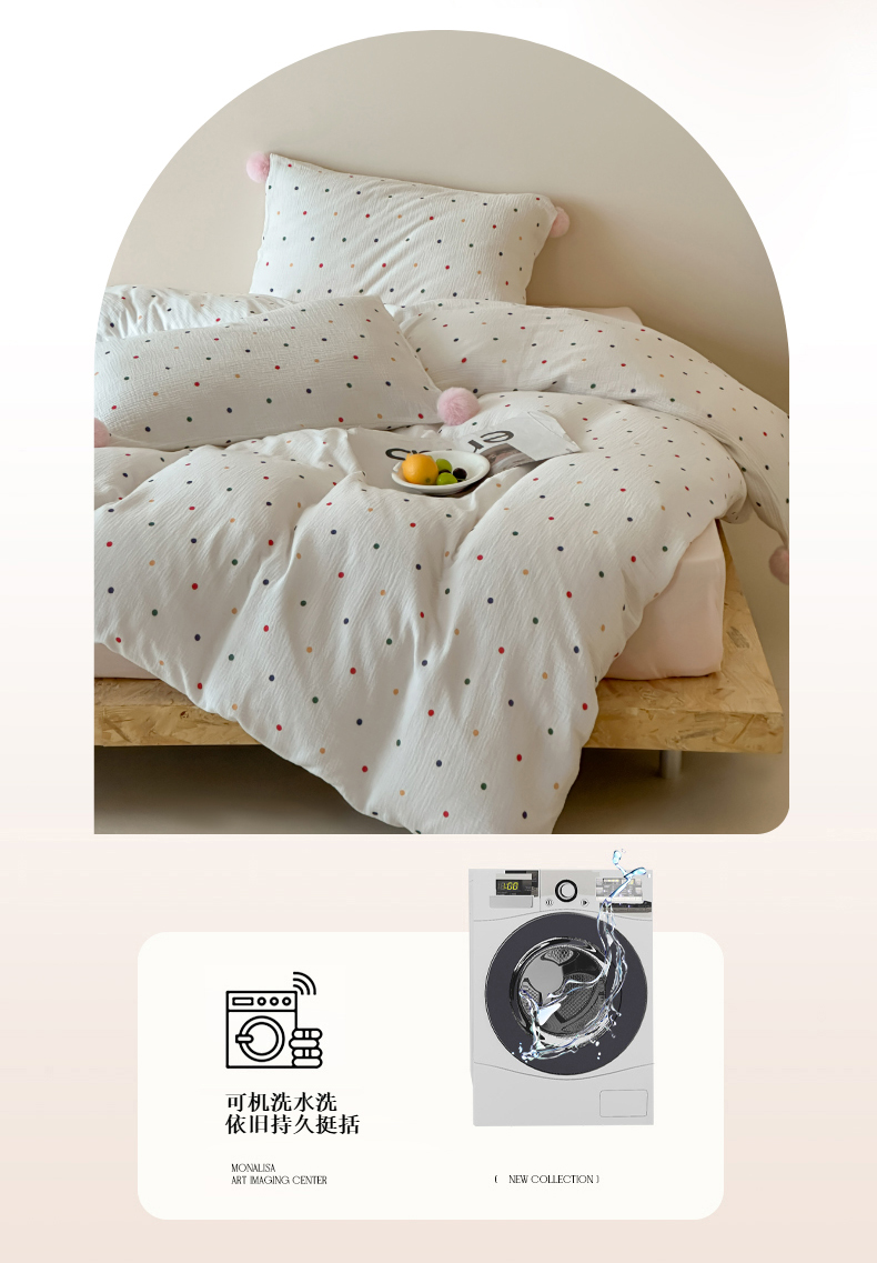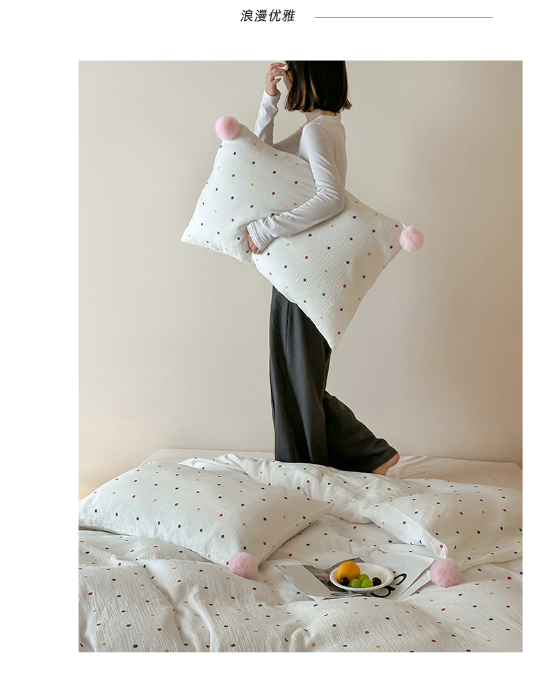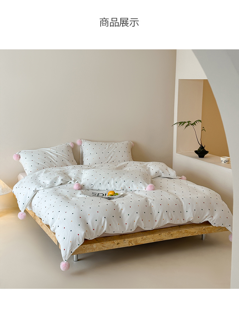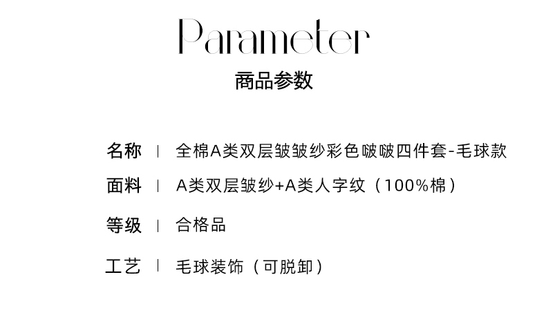商品名称:(总)玛奇朵 2025新品全棉A类双层皱皱纱彩色啵啵四件套-毛球款