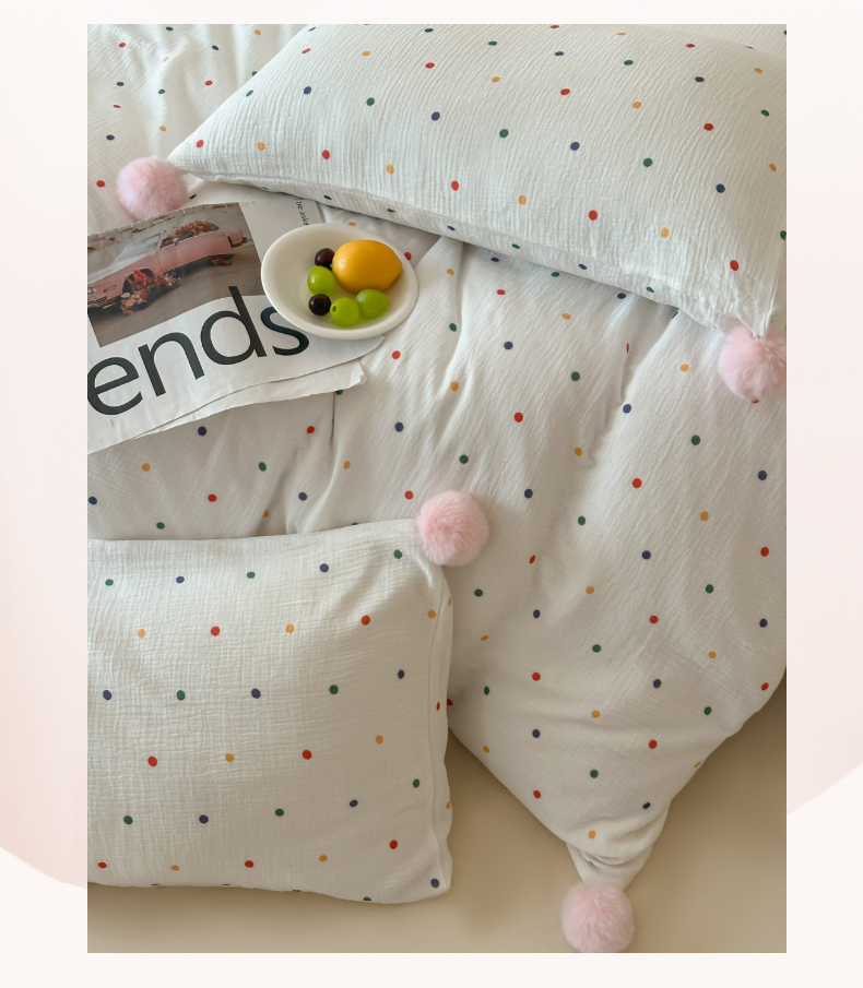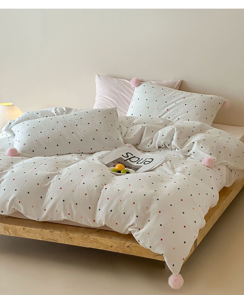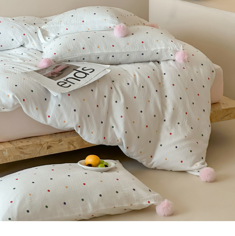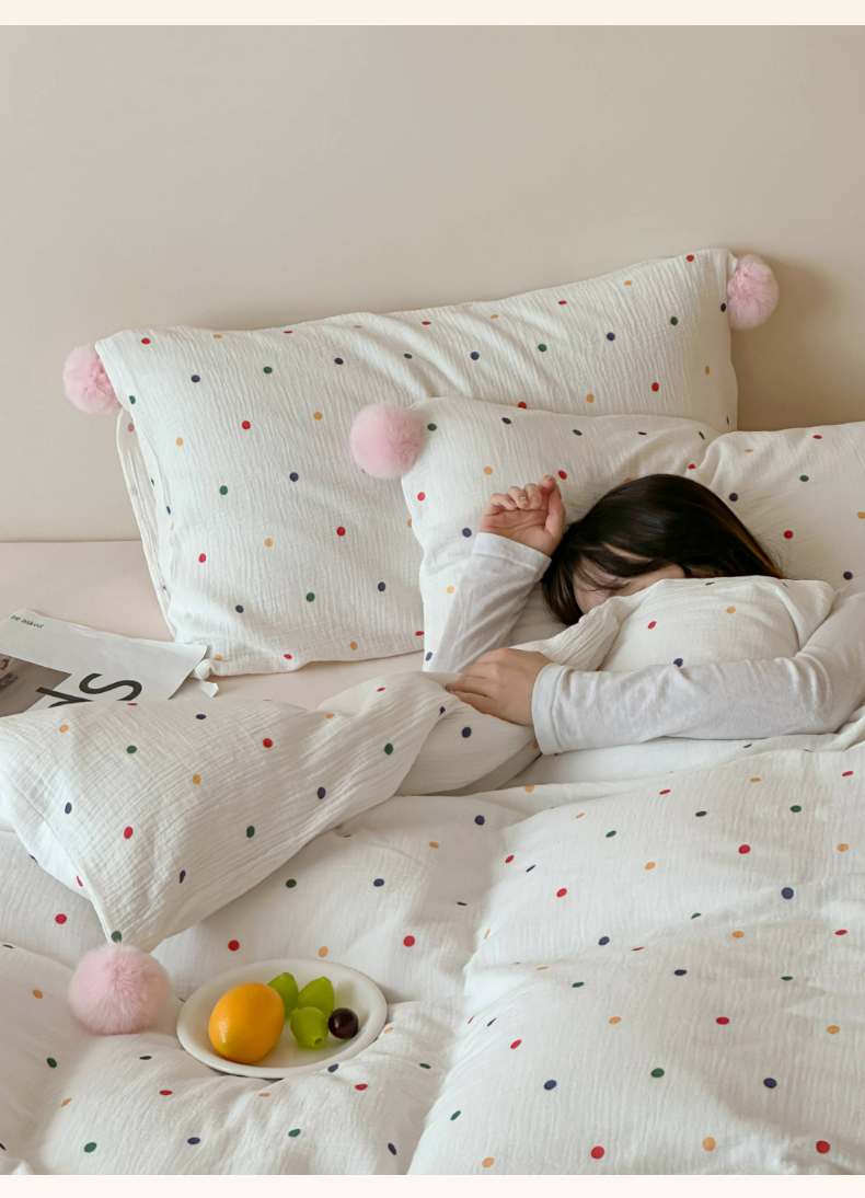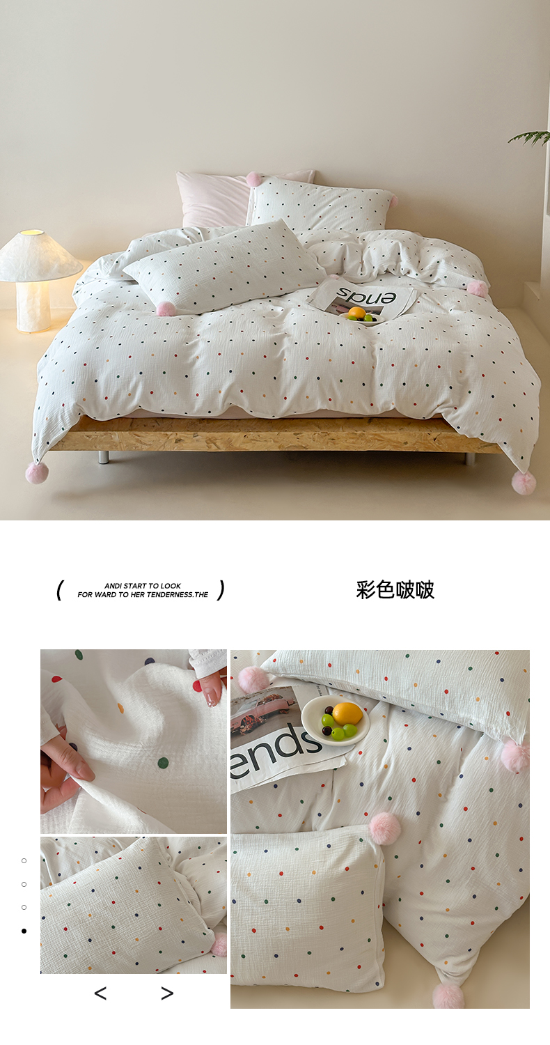 (总)玛奇朵 2025新品全棉A类双层皱皱纱彩色啵啵四件套-毛球款