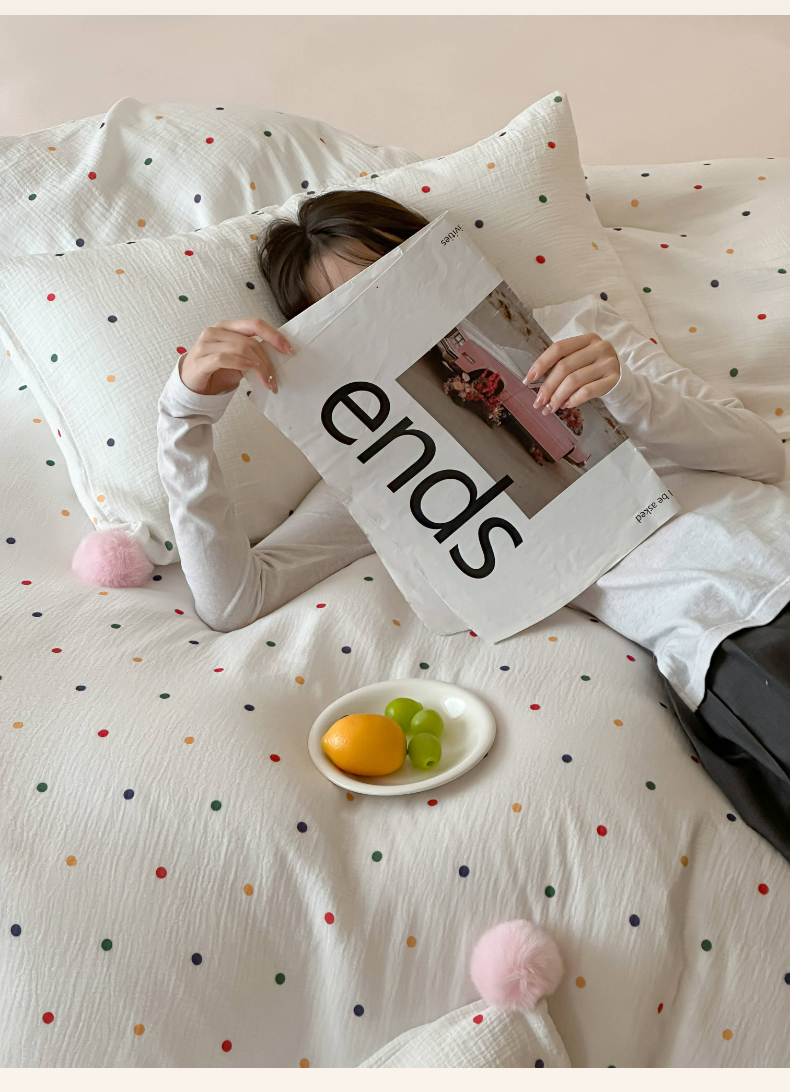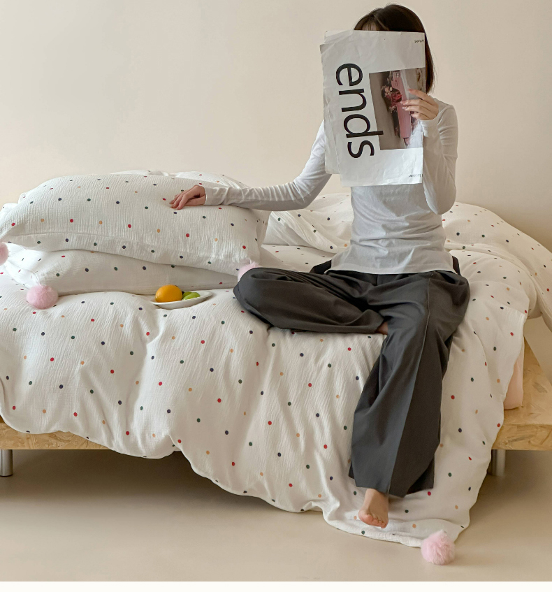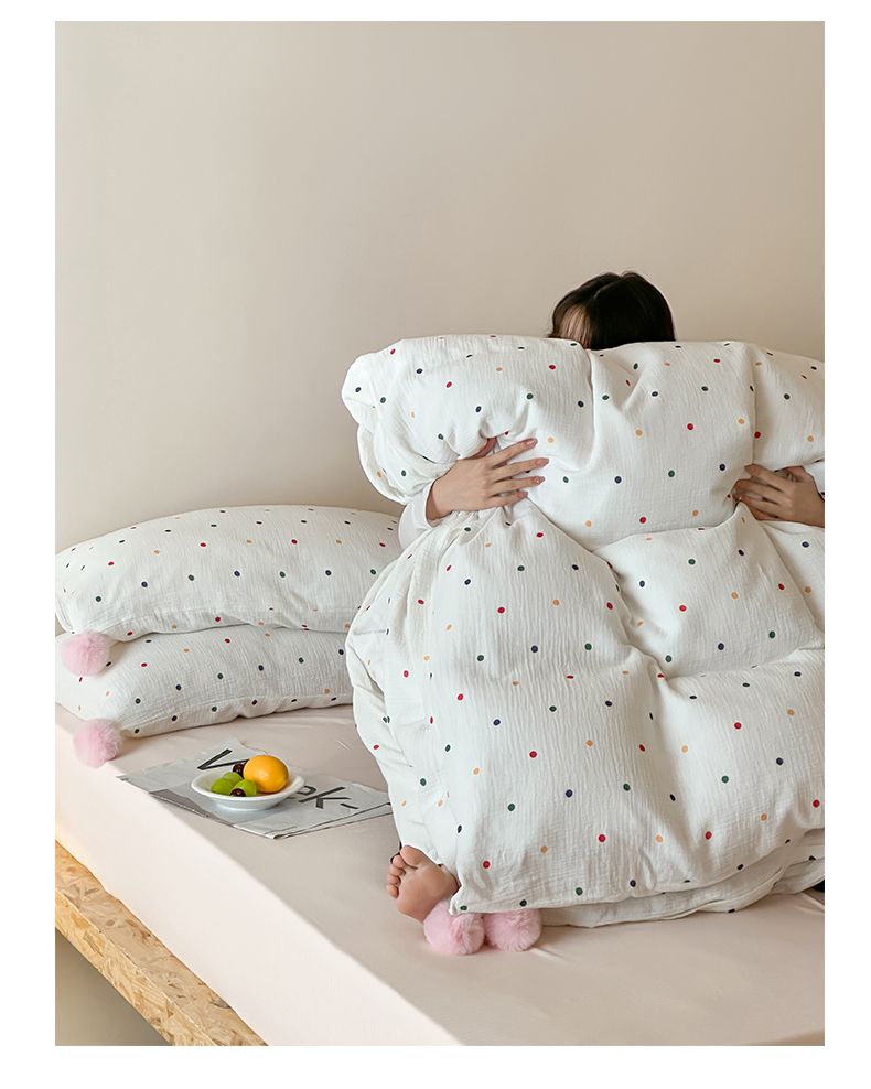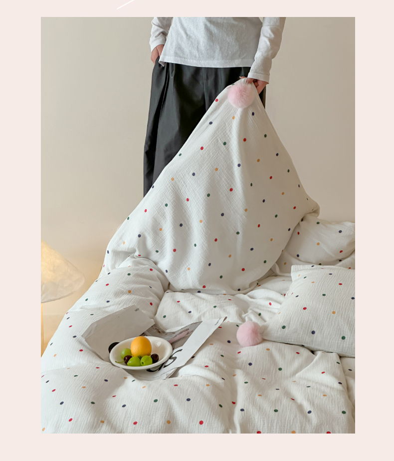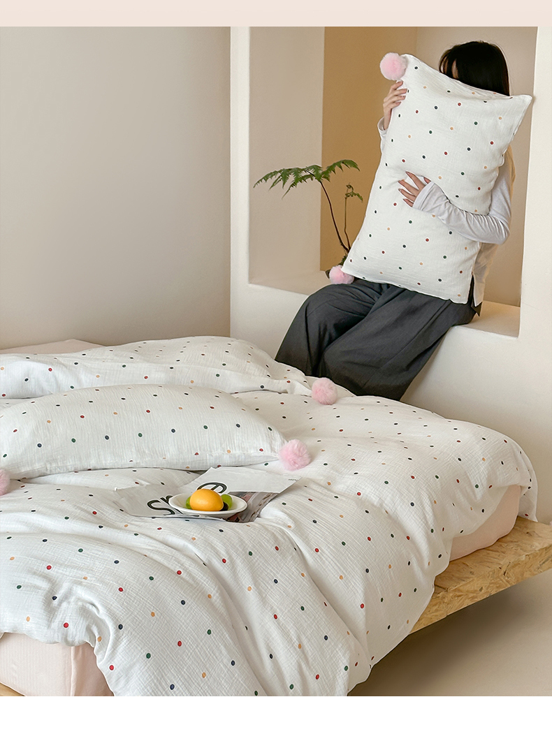 (总)玛奇朵 2025新品全棉A类双层皱皱纱彩色啵啵四件套-毛球款