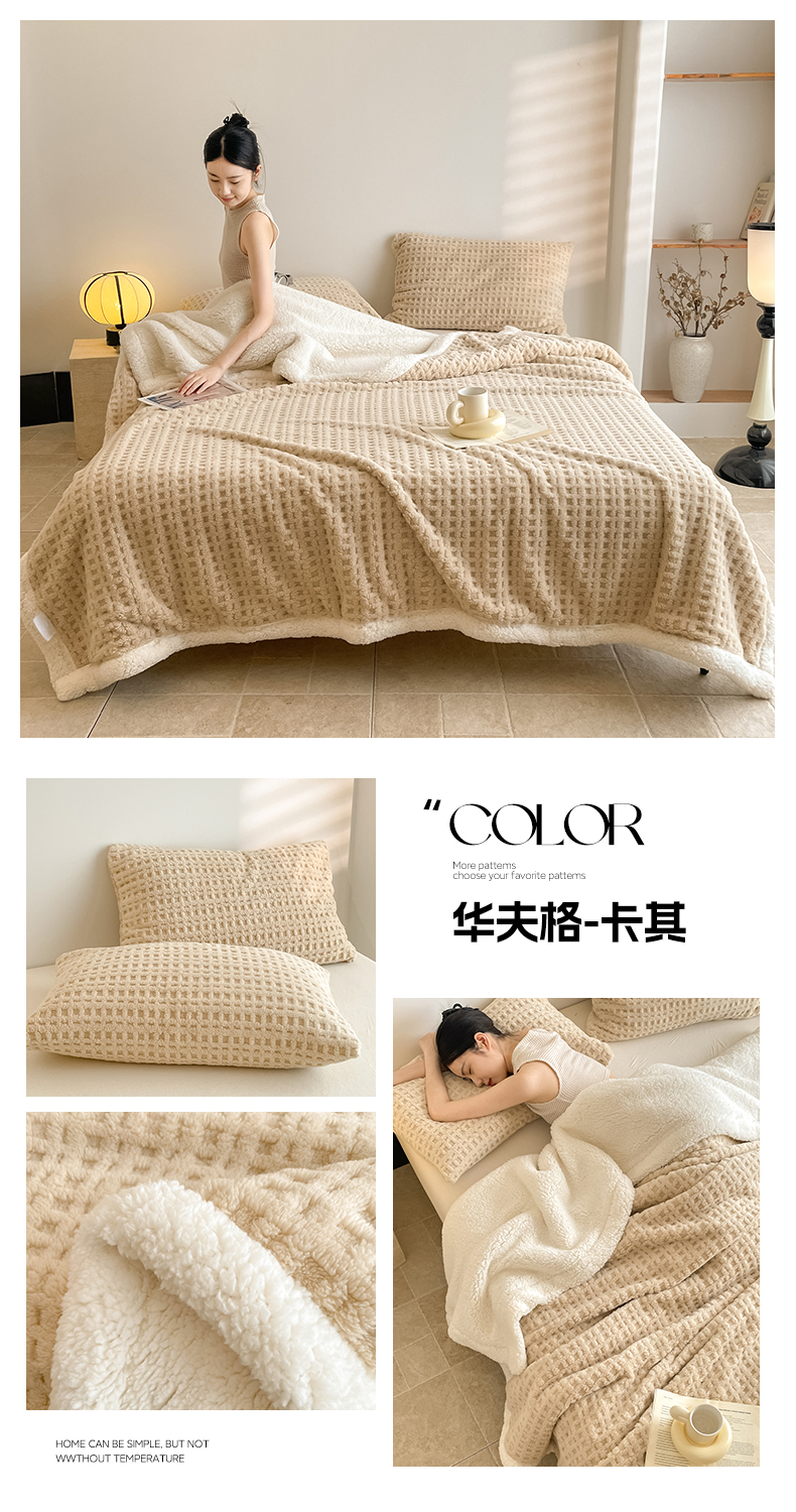 商品名称:欧邦 2025新款华夫格双层毯盖毯毯子-场景1 华夫格-深灰