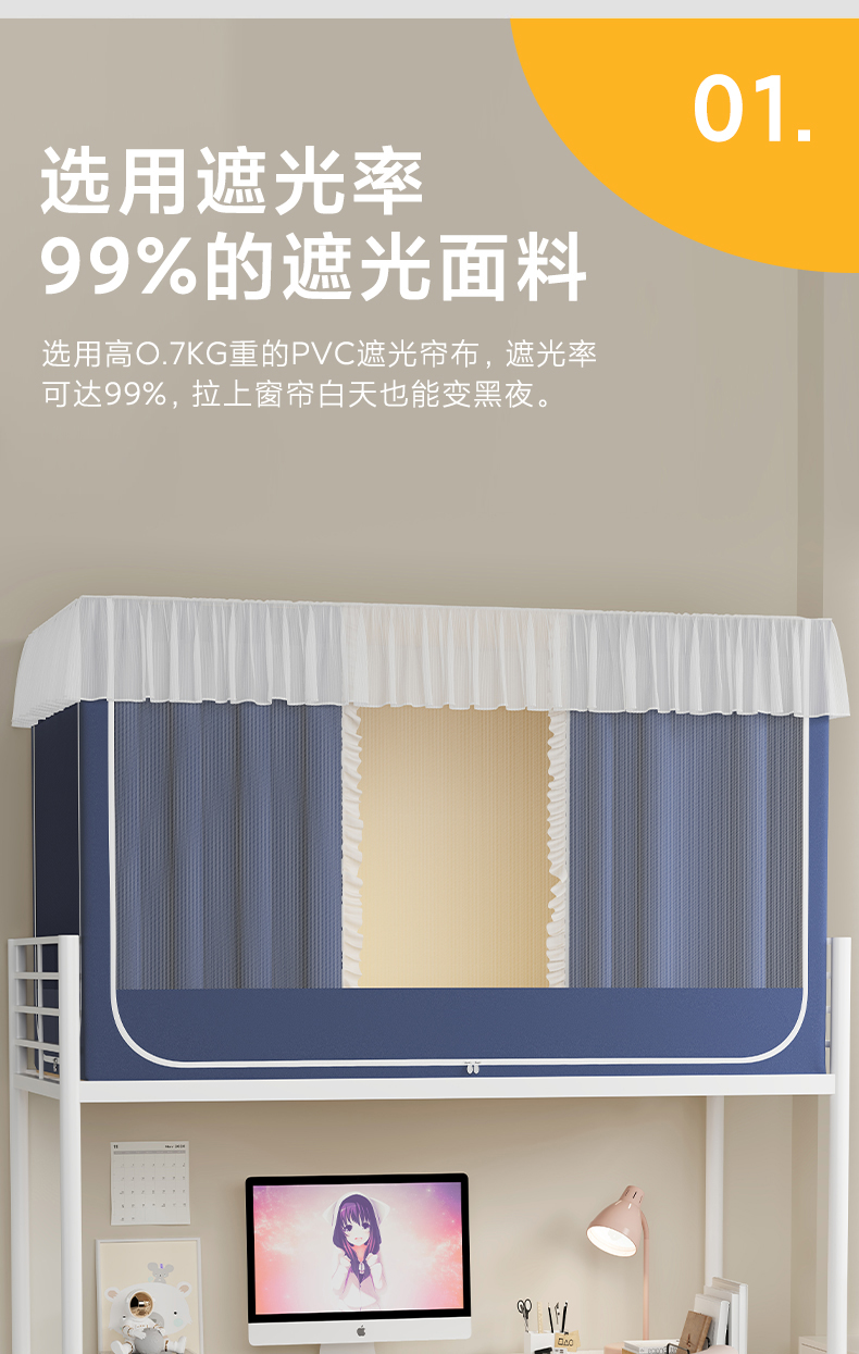 当前位置: 91家纺网 > 商品网购 > 床上用品 > 蚊帐 > 学生蚊帐 > 无瑕家居 2025新款学生上下铺遮光防蚊蚊帐雪纺蕾丝遮光加密蚊帐床幔 豆绿【含靠墙帘 五面遮光】