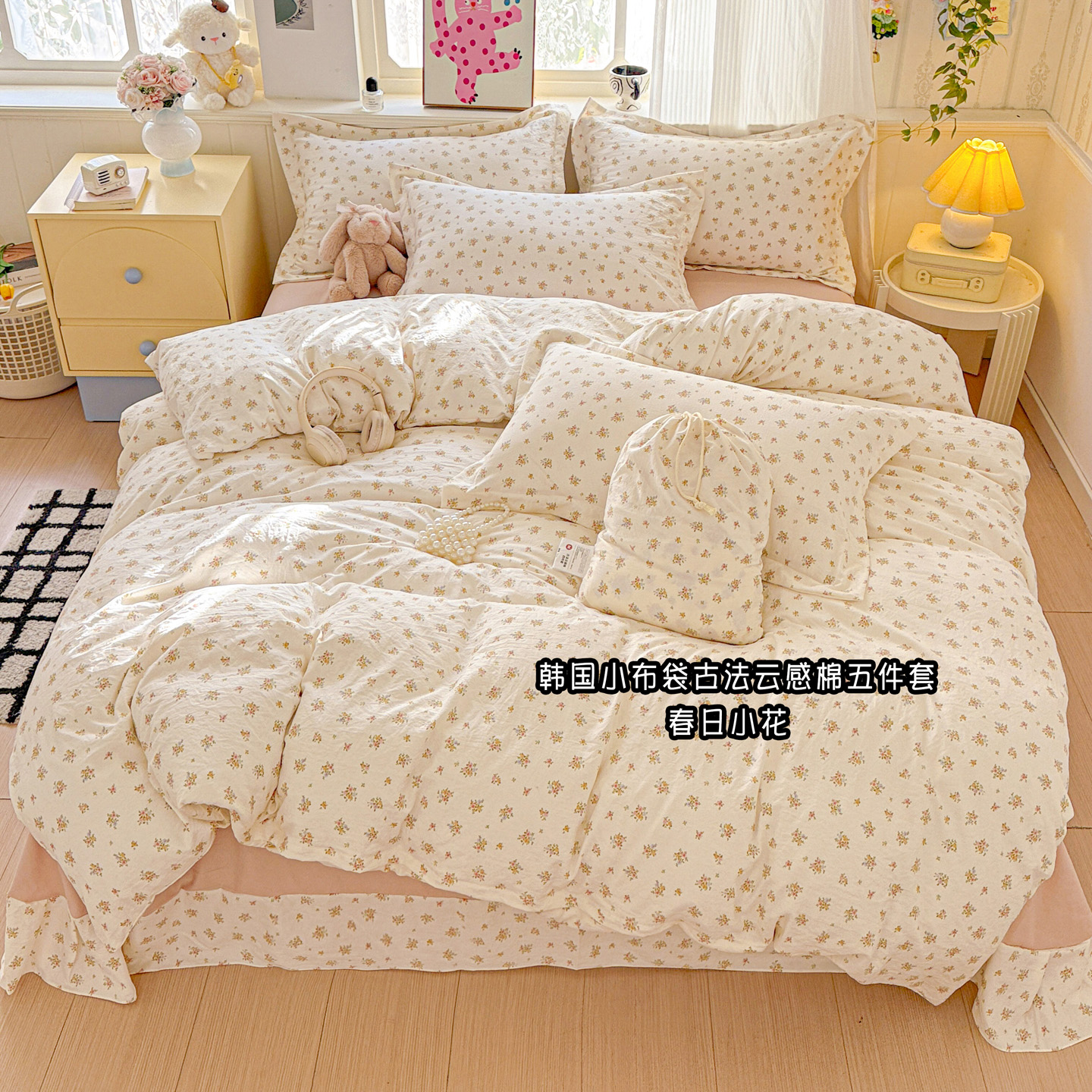 商品名称:梦莱斯 2025新款韩国小布袋古法云感棉四件套 春日小花