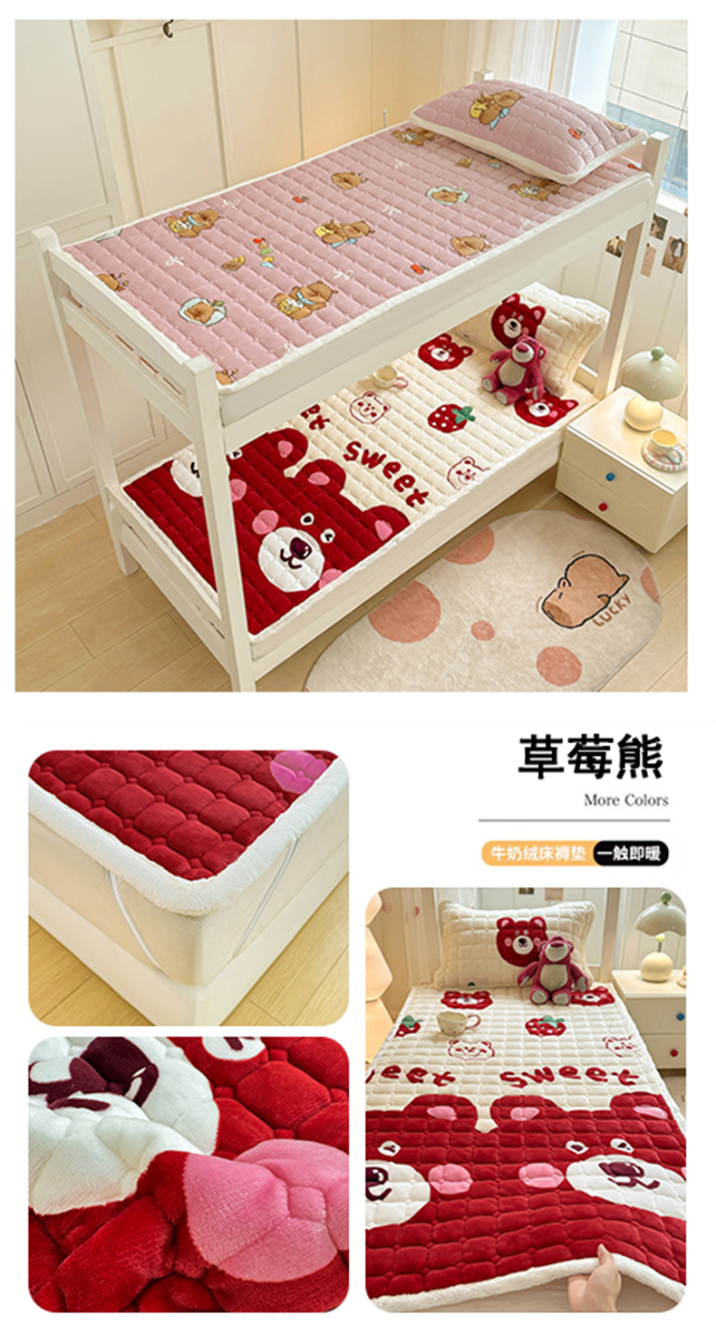 当前位置: 91家纺网 > 商品网购 > 床垫/床褥 > 优品惠 2025新款冬季牛奶绒床垫床褥垫子床护垫加绒床盖学生宿舍上下铺 字母樱桃