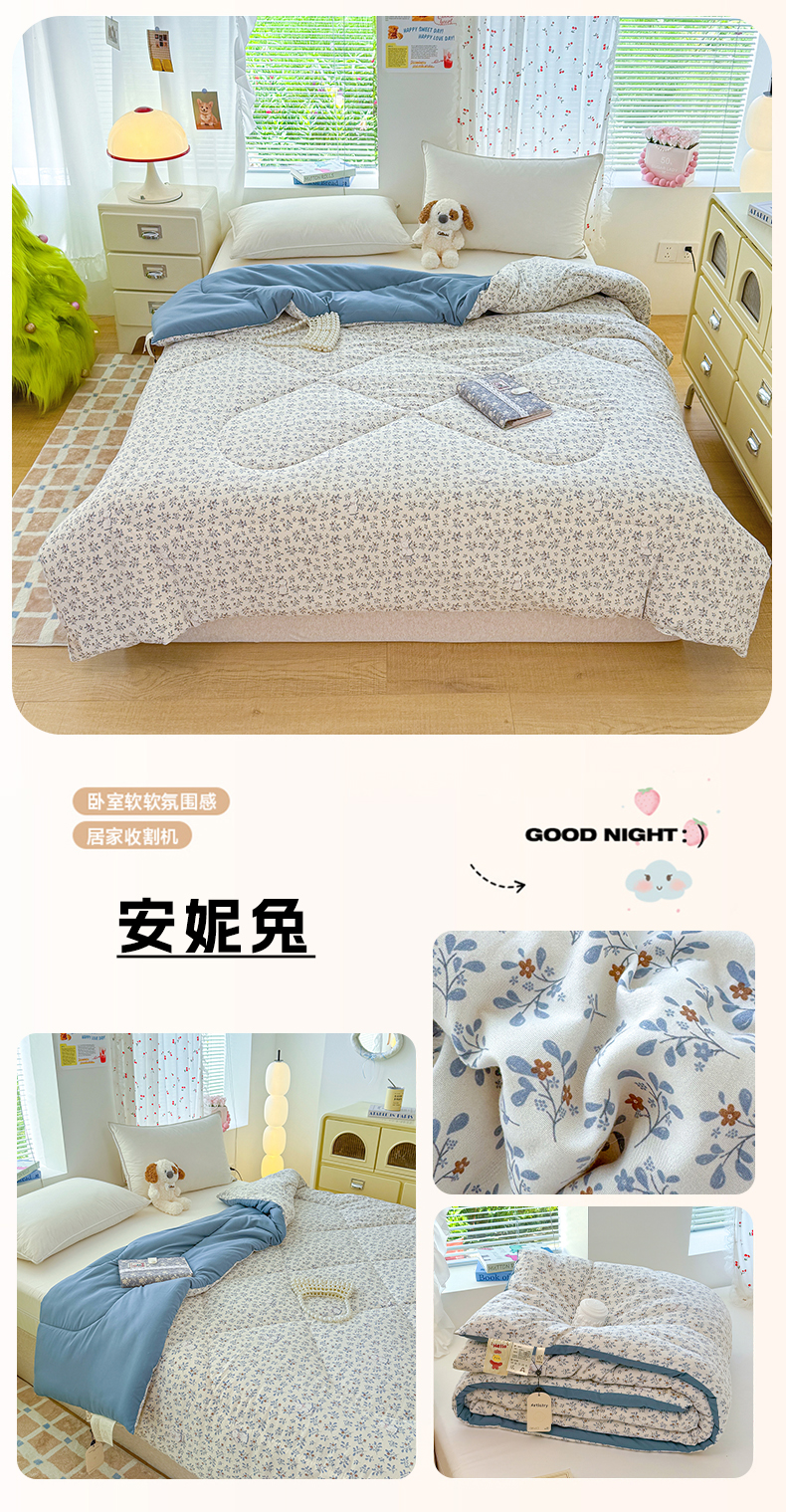 • 91家纺网 家纺一手货源 找家纺 (总)弗苓家纺 2025新款糯叽叽ins风双层纱水洗棉冬被被子被芯,绚颜,汪汪队,蜡笔小新,春晓,垂耳免,樱桃,粉黛,安妮兔,西高地,初恋,海盐-蓝,海盐-米,米奇妙妙,梦蝶,郁金香,组合图仅供参考不可下单