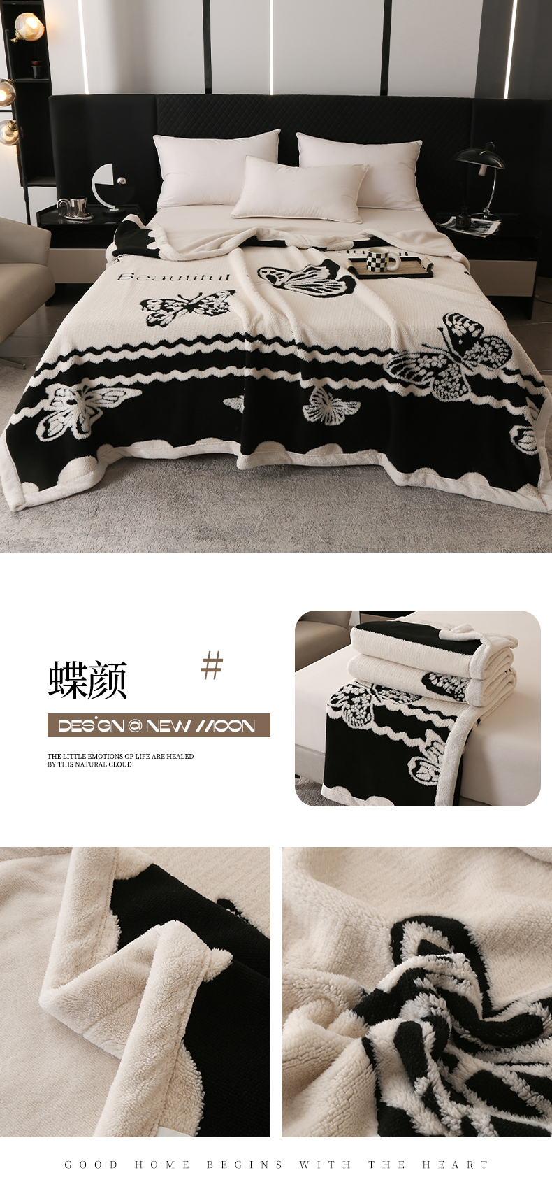 商品名称:卡奥家纺 2025新款双层提花复合欧棉绒毛毯 蝶颜