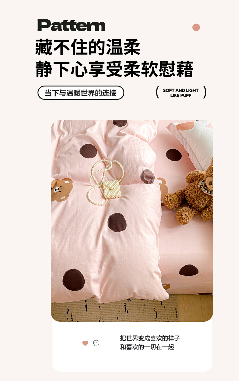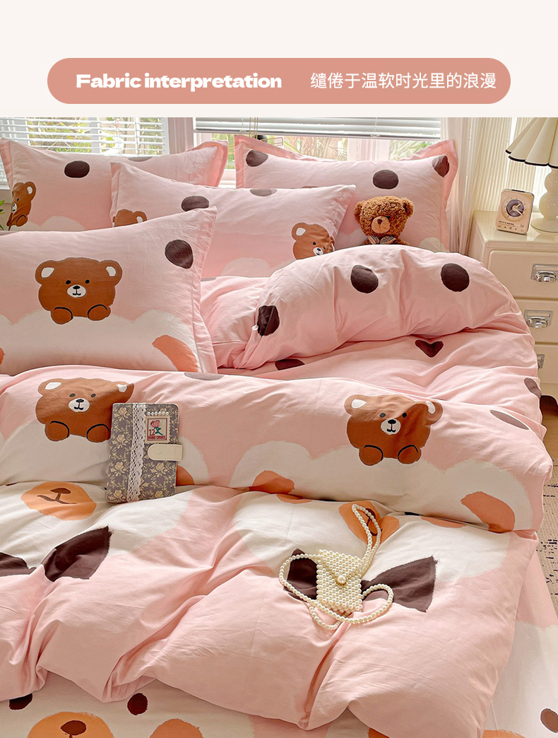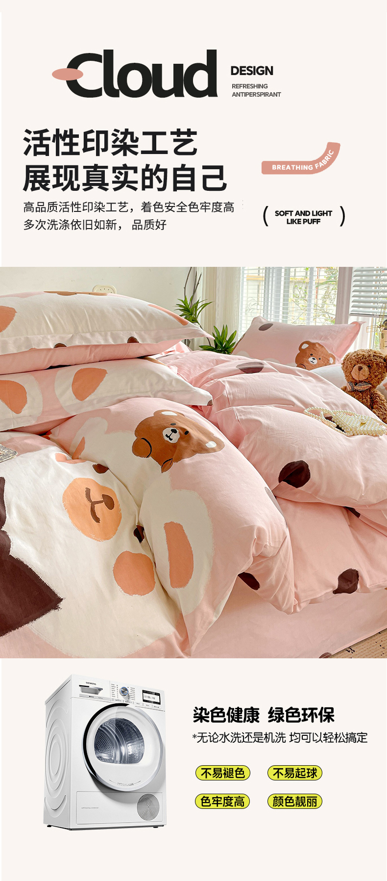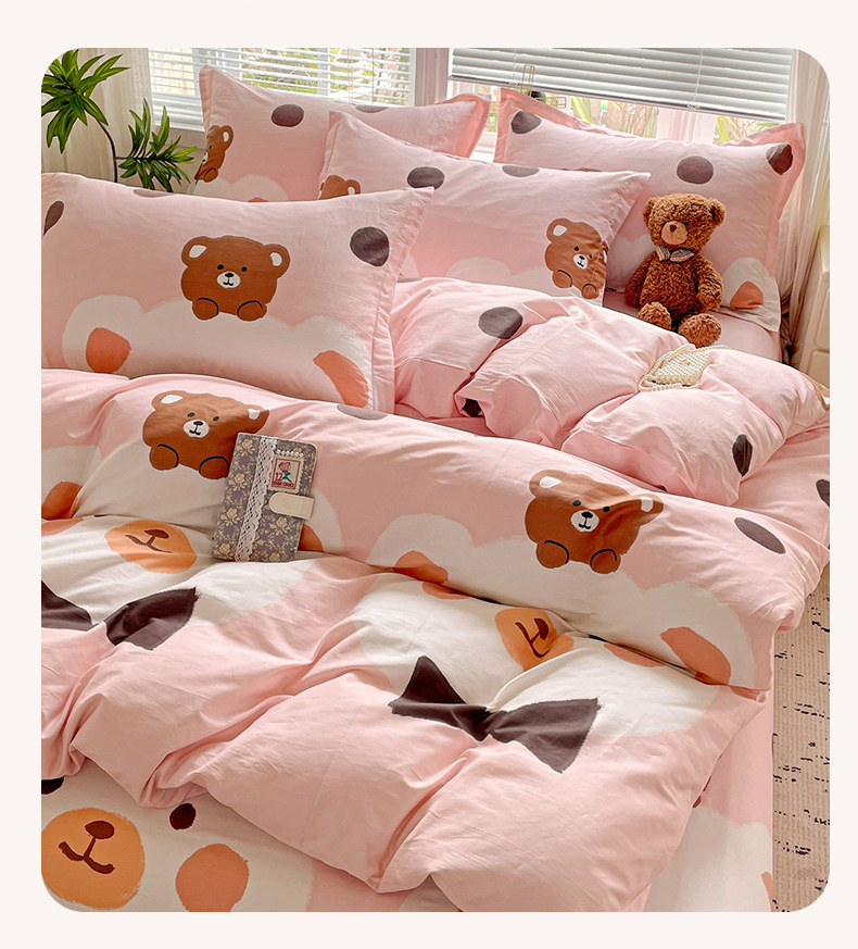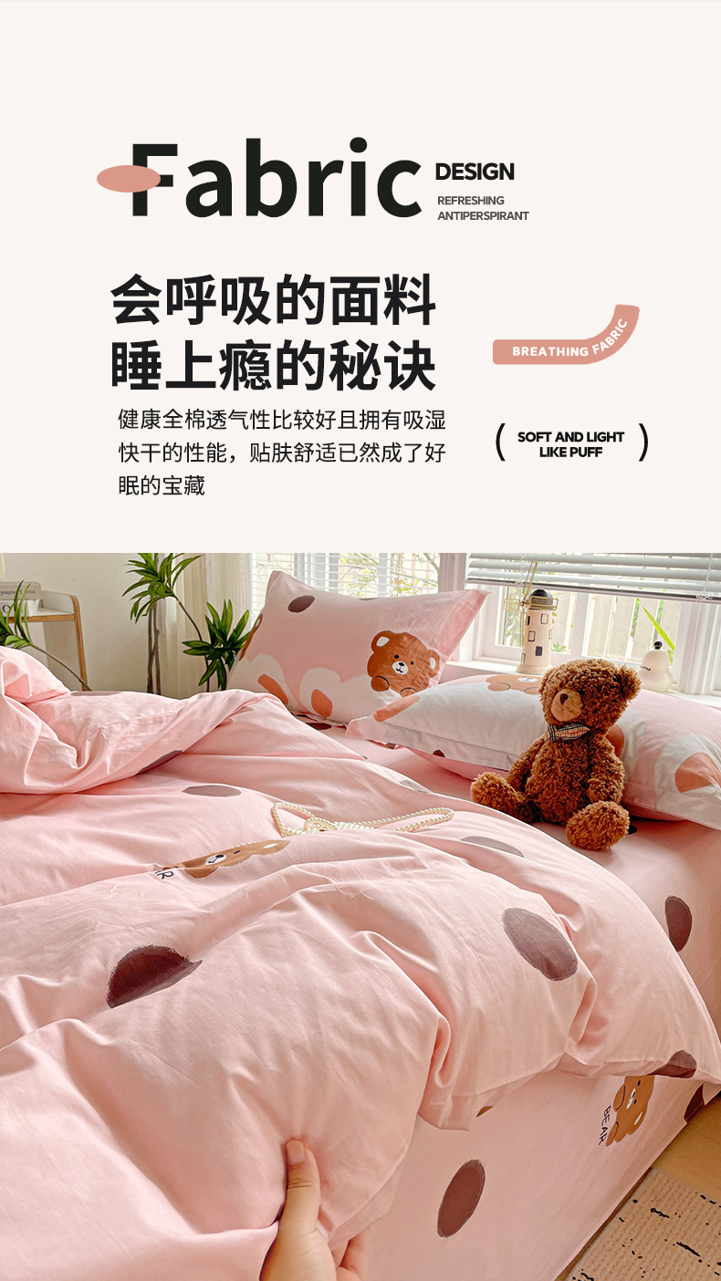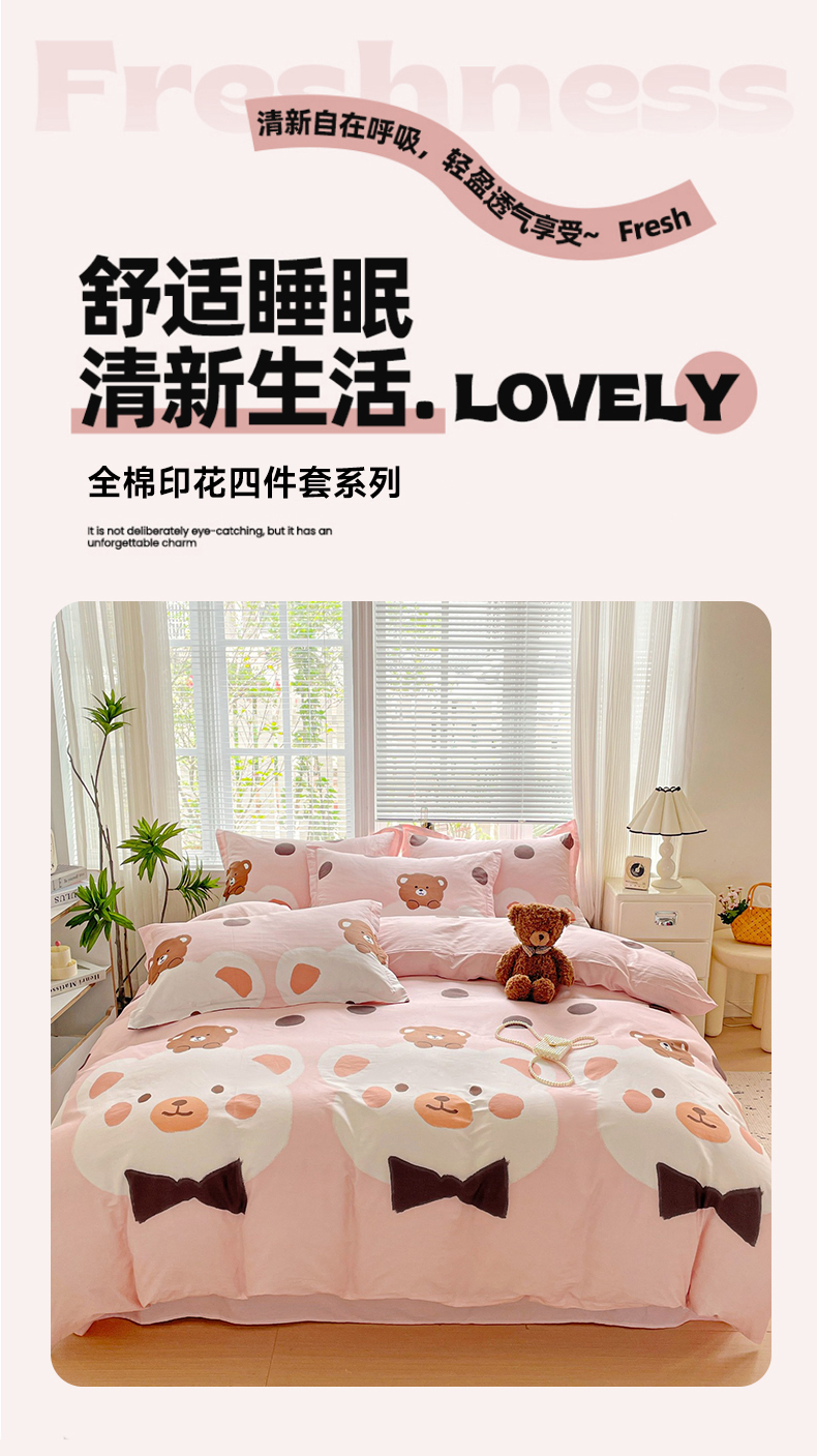 当前位置: 91家纺网 > 商品网购 > 床品套件 > 四件套 > 全棉普通四件套 > 文黛家居 2025新款全棉喷气印花全棉纯棉印花系列四件套 熊熊乐园-粉